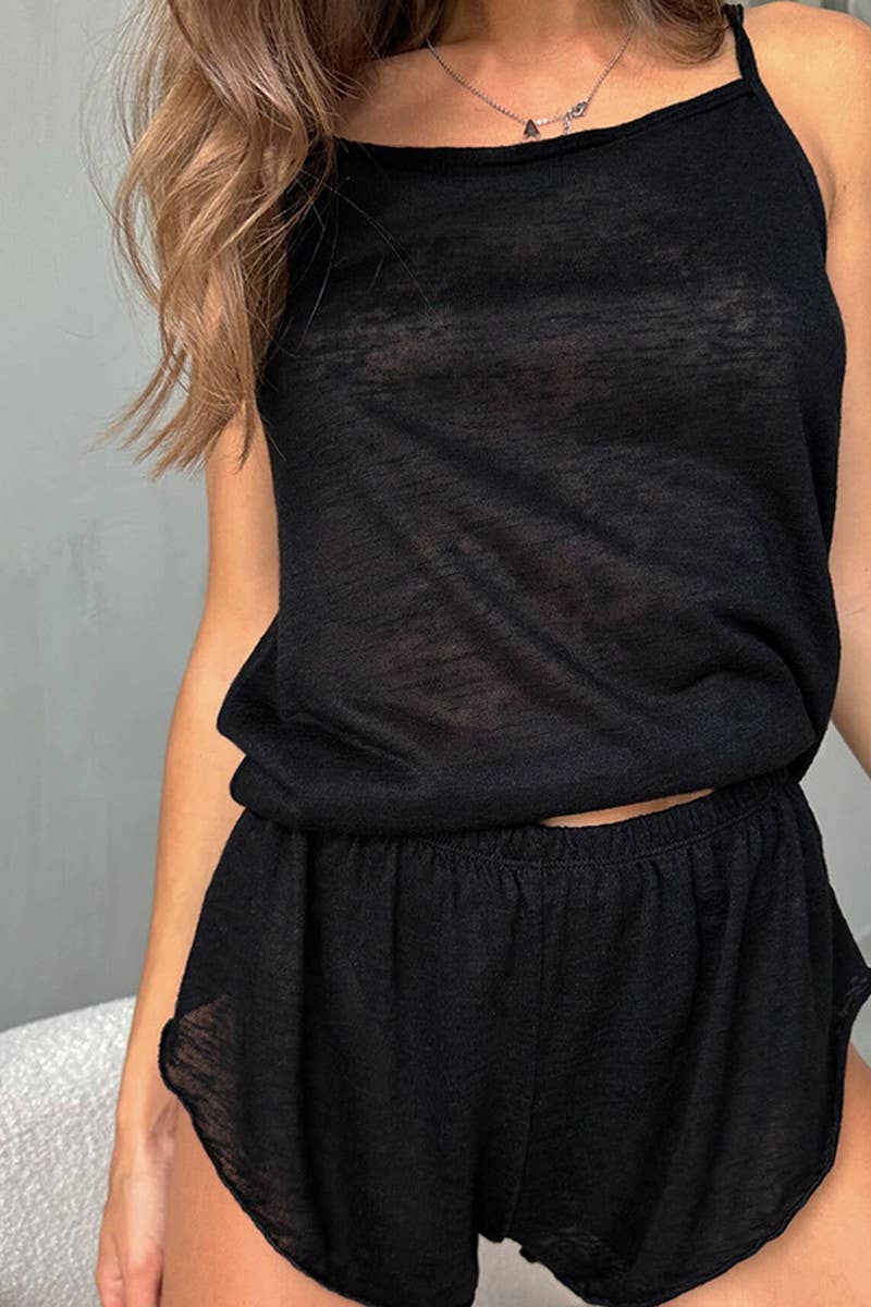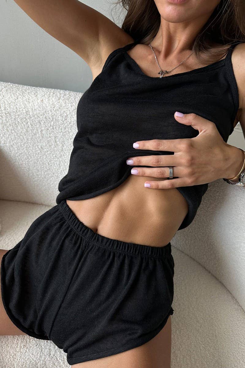 KNITTED SOFT SUSPENDER SHORTS PAJAMAS HOME SET