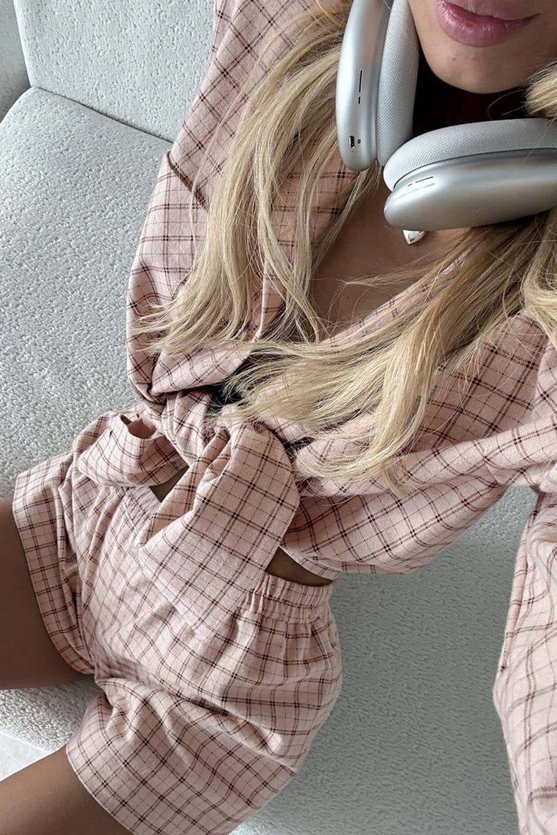 PLAID CARDIGAN SHORTS HOME PAJAMAS TWO-PIECE SET