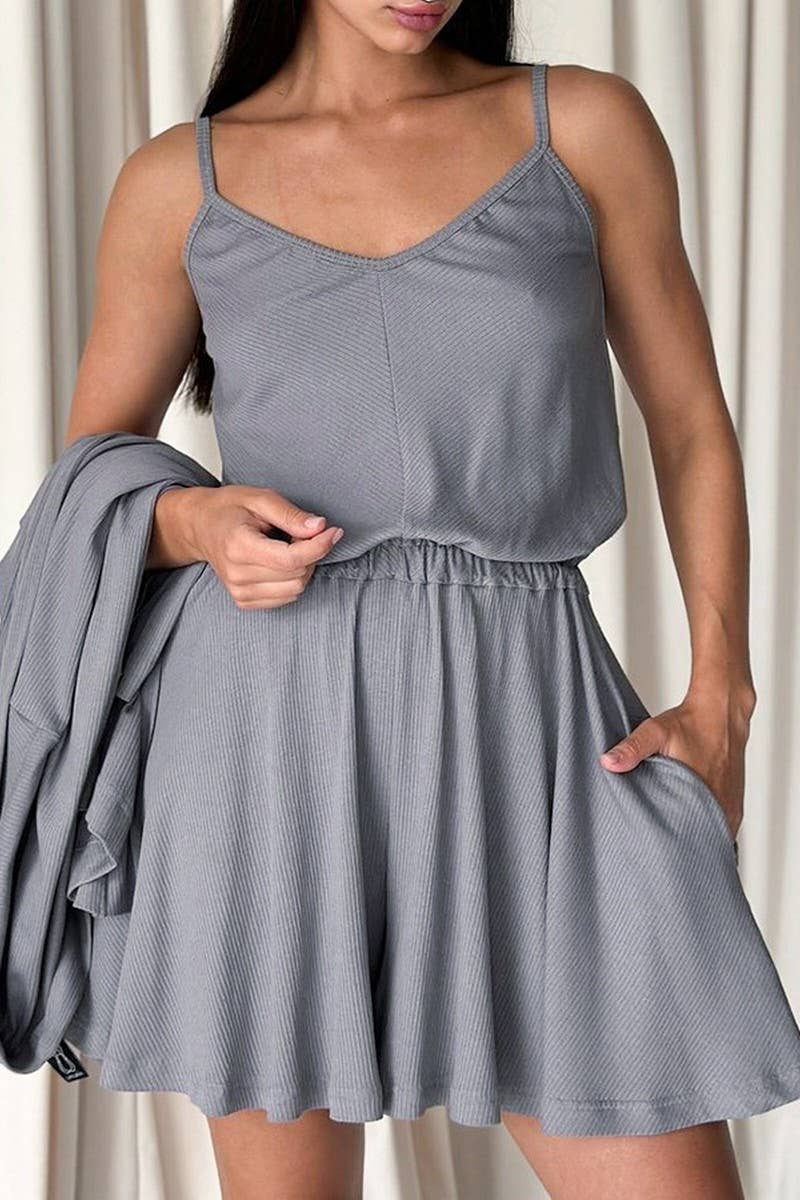 LONG-SLEEVED NIGHTGOWN SUSPENDER SHORTS SET
