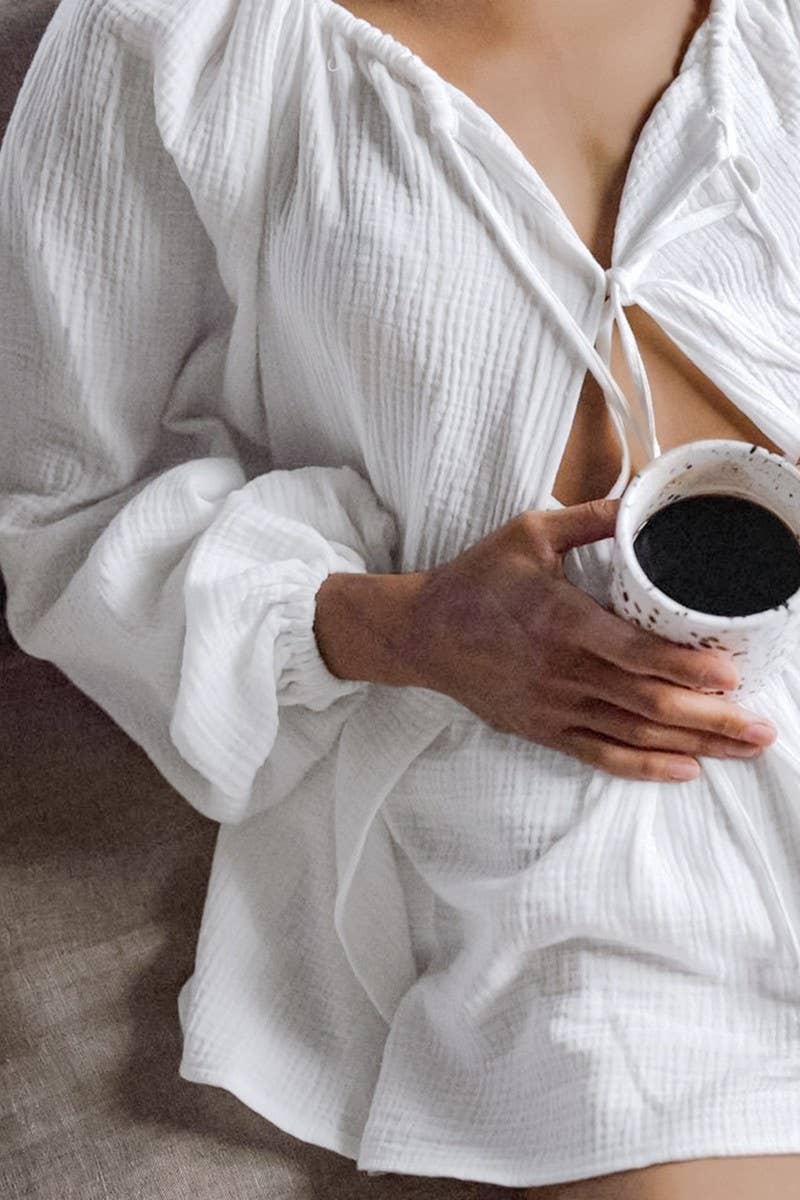 LOOSE COTTON LONG SLEEVE SHORTS PAJAMA SET