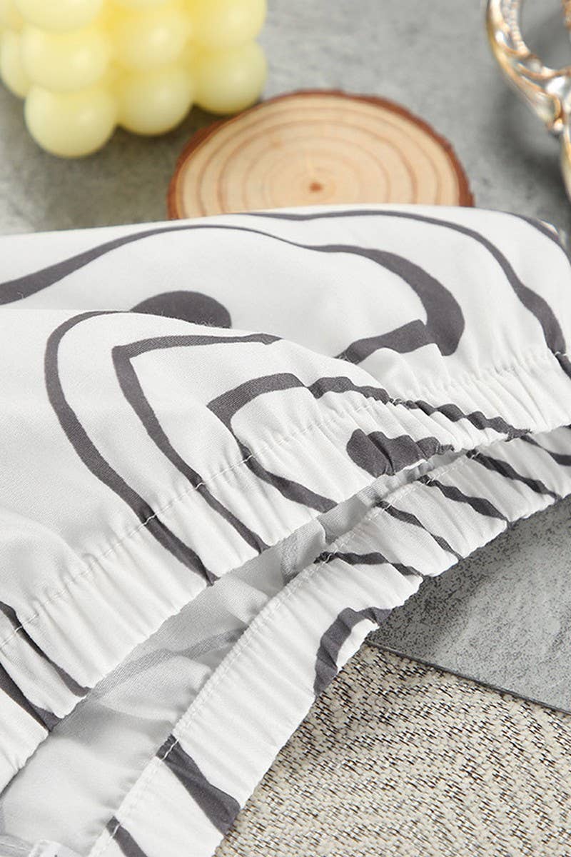 PRINTED LACE-UP PAJAMAS THREE-PIECE SET