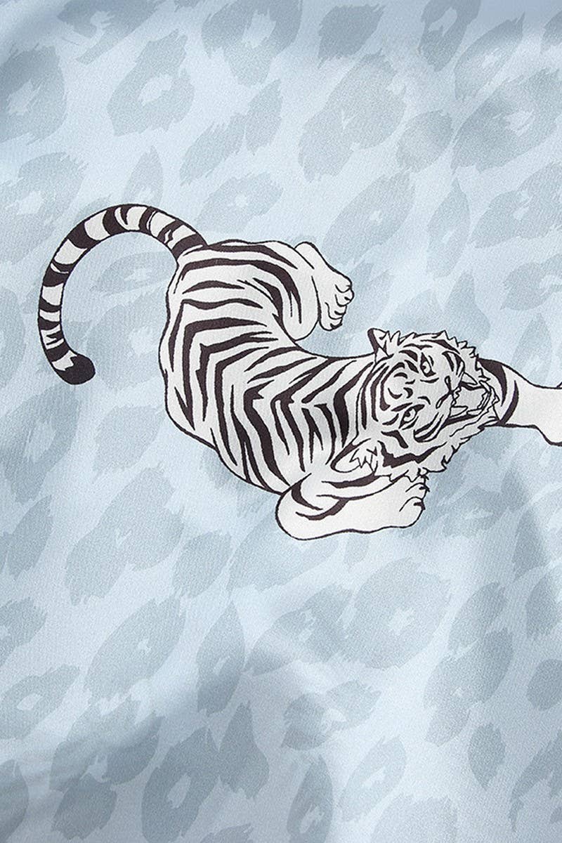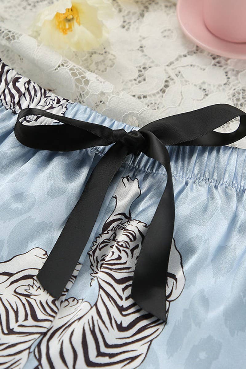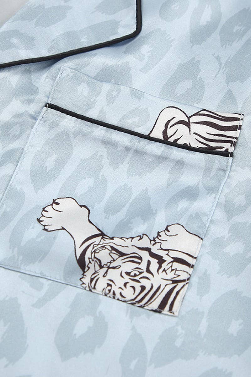 SATIN LEOPARD PRINT LONG SLEEVE SHORTS PAJAMAS