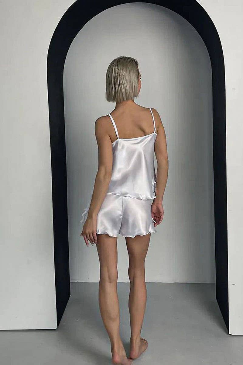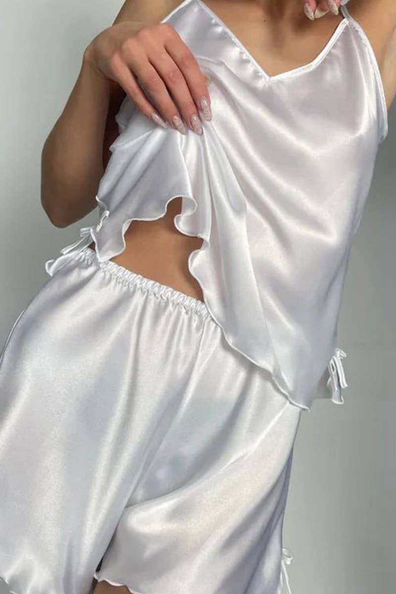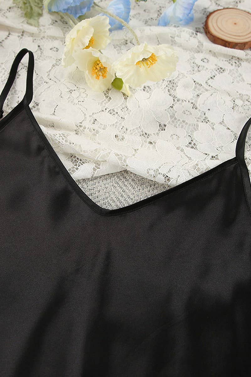 BLACK SATIN SHORTS SUSPENDERS HOME WEAR SET