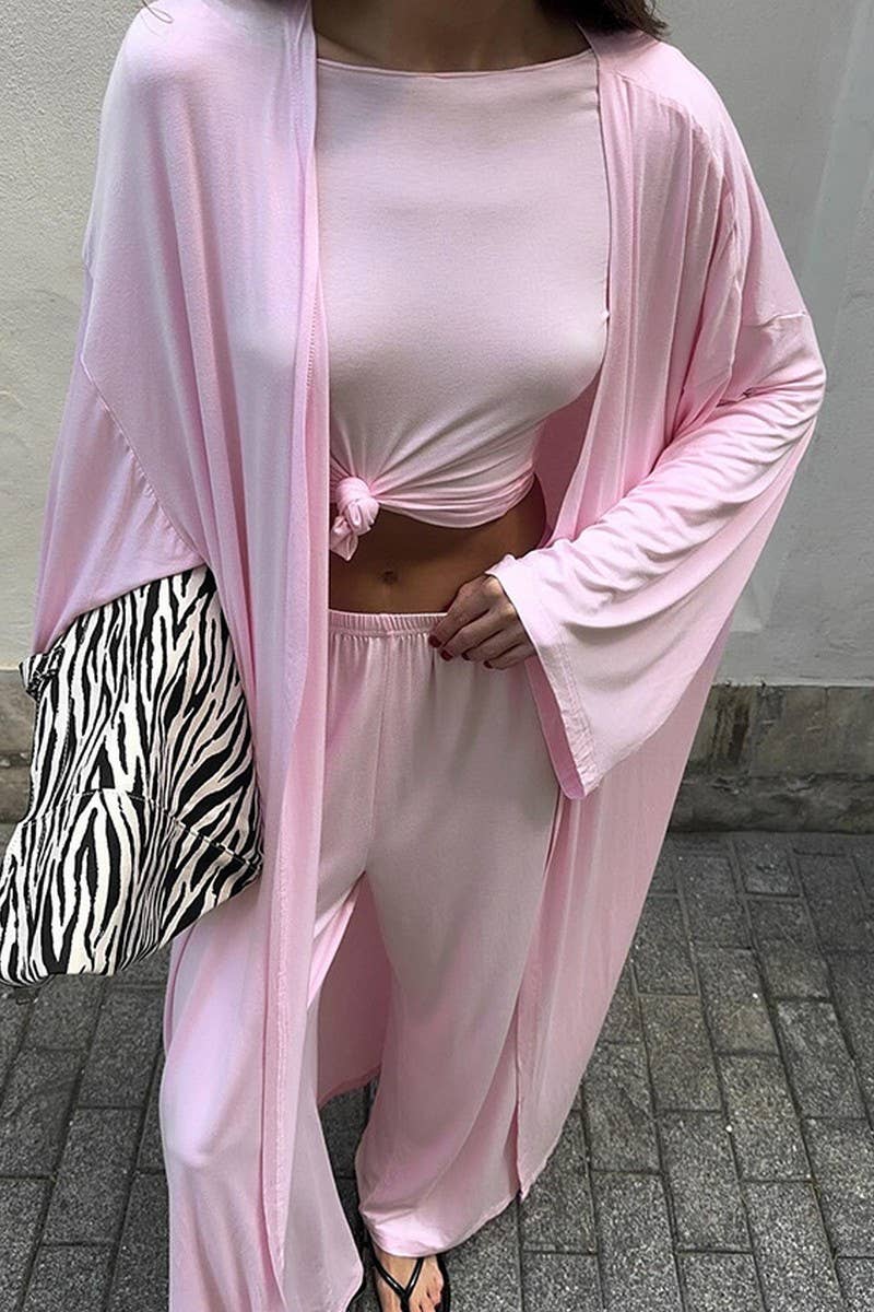 SOLID COLOR LONG-SLEEVED KNITTED PAJAMAS SET