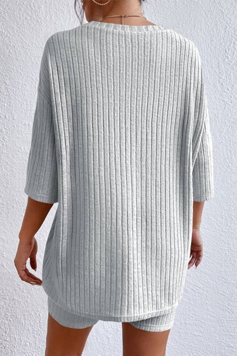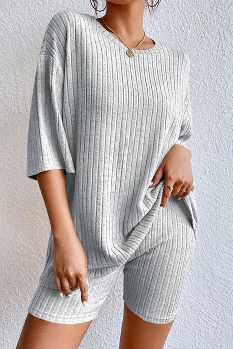 SOLID COLOR CASUAL SHORT-SLEEVED TOP SHORTS PEACH