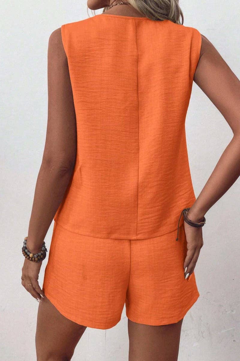 SOLID COLOR V-NECK IRREGULAR VEST SHORTS SET