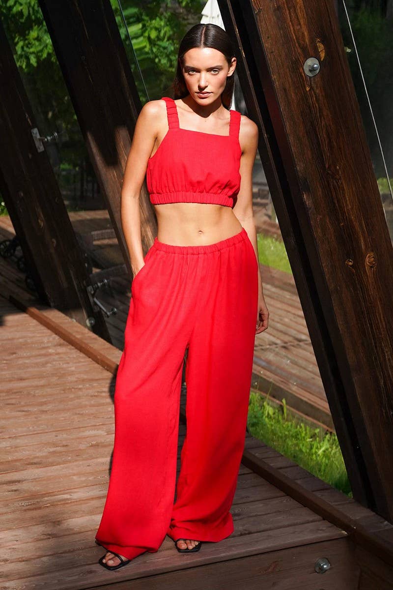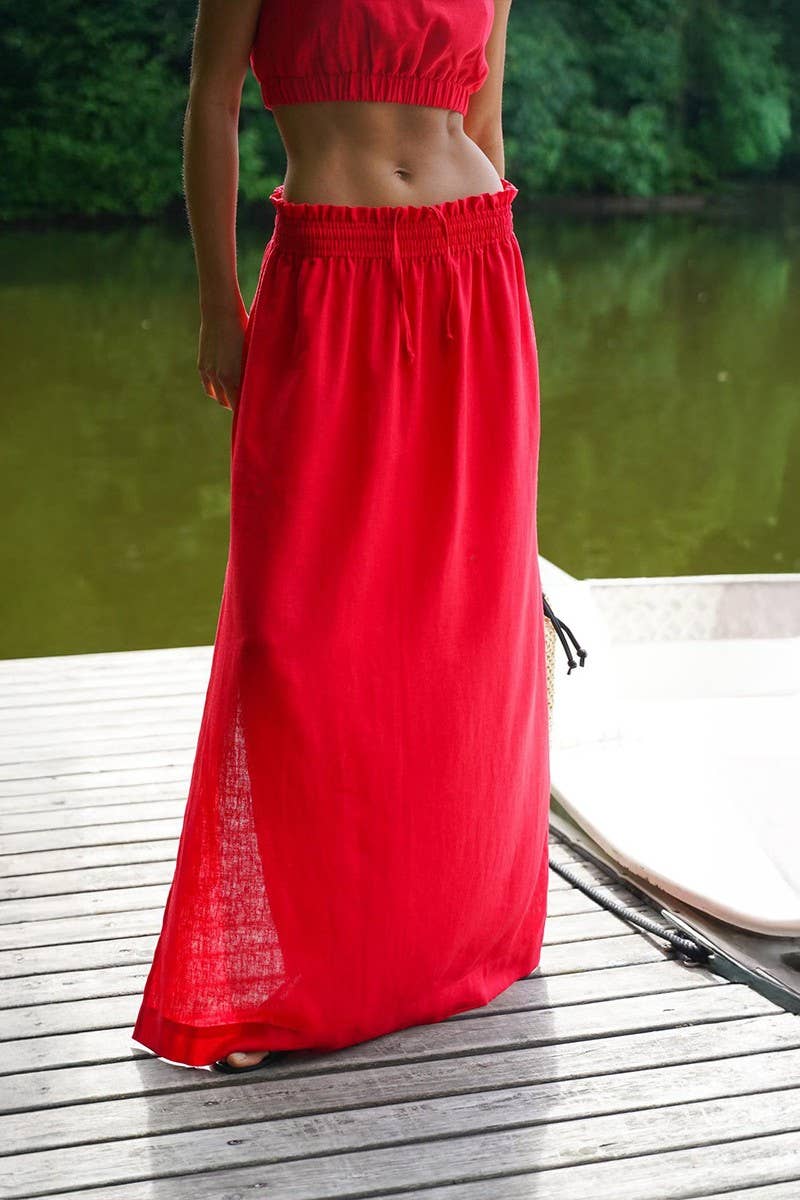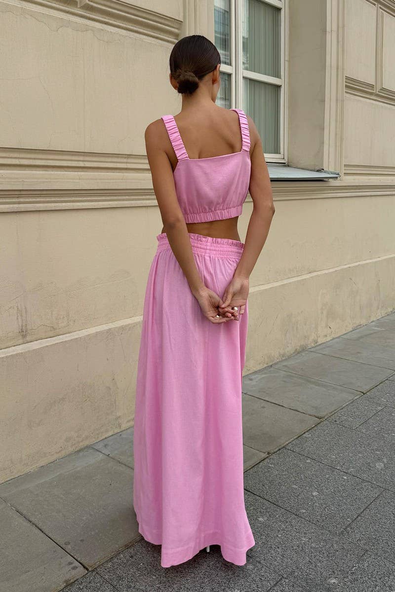 COTTON-LINEN CAMI TOP & SPLIT MIDI SKIRT SET
