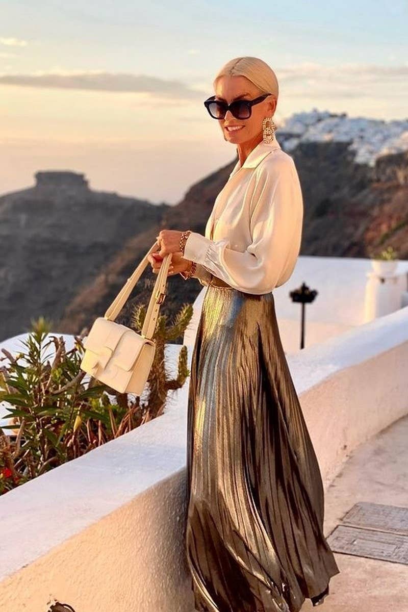 LONG-SLEEVED SHIRT + METALLIC SHINY SKIRT