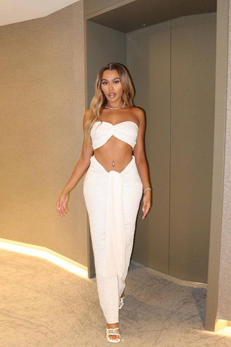BANDEAU NAVEL-BARING LONG SKIRT SUIT
