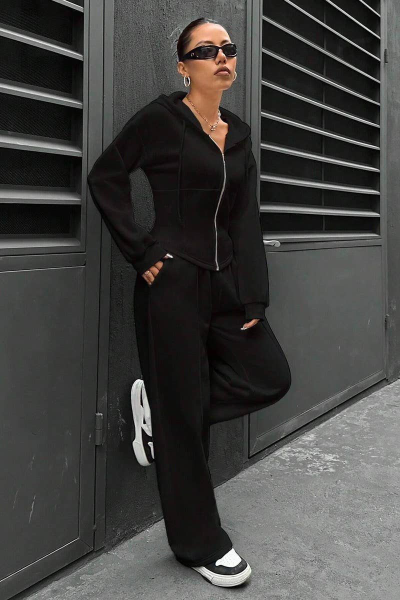 HOODED CARDIGAN CASUAL SPORTS TWO-PIECE SET