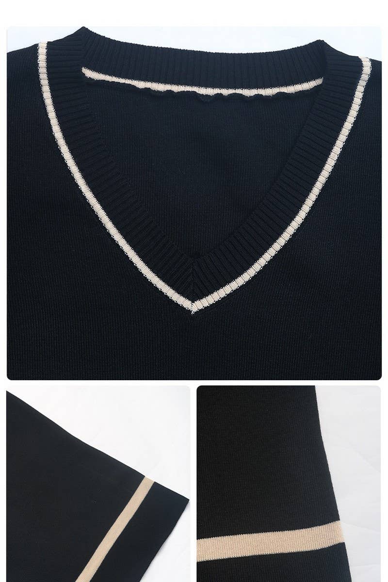 CONTRAST-COLOR KNITTED LONG-SLEEVED TROUSERS SET