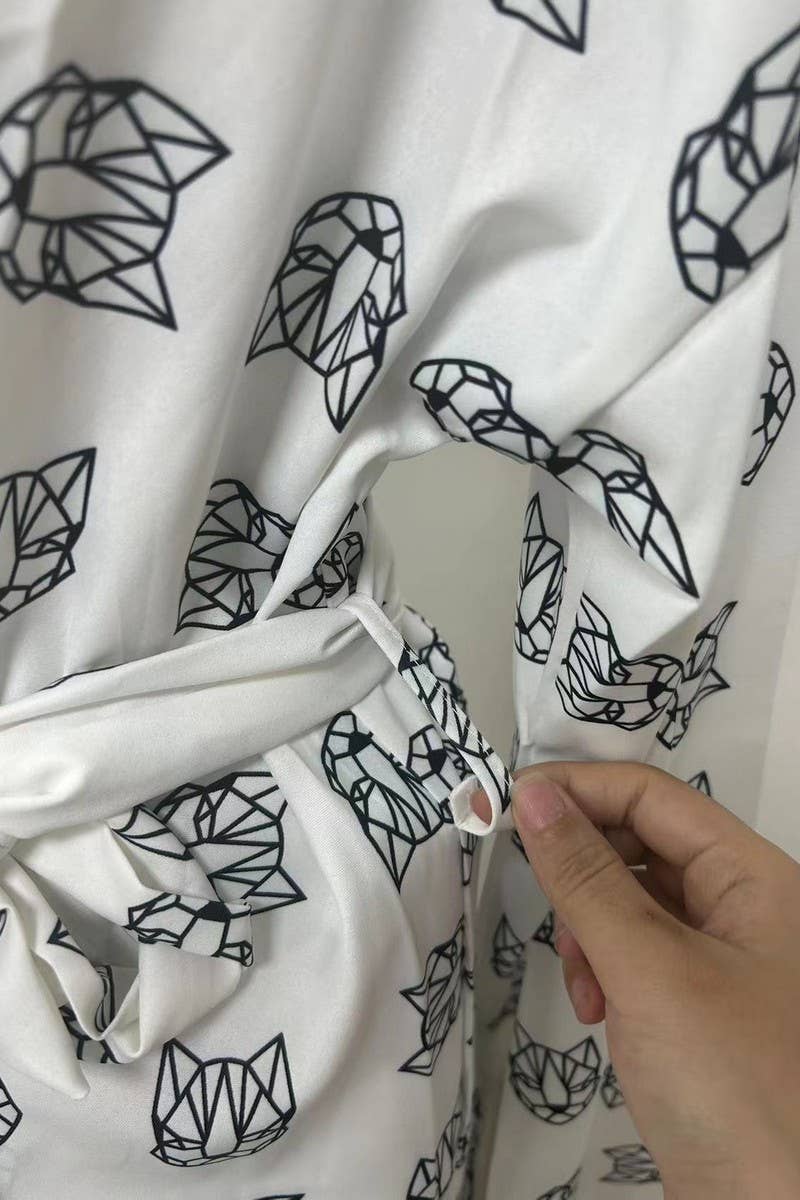 LONG-SLEEVED PRINTED TIE TOP AND SHORTS SET