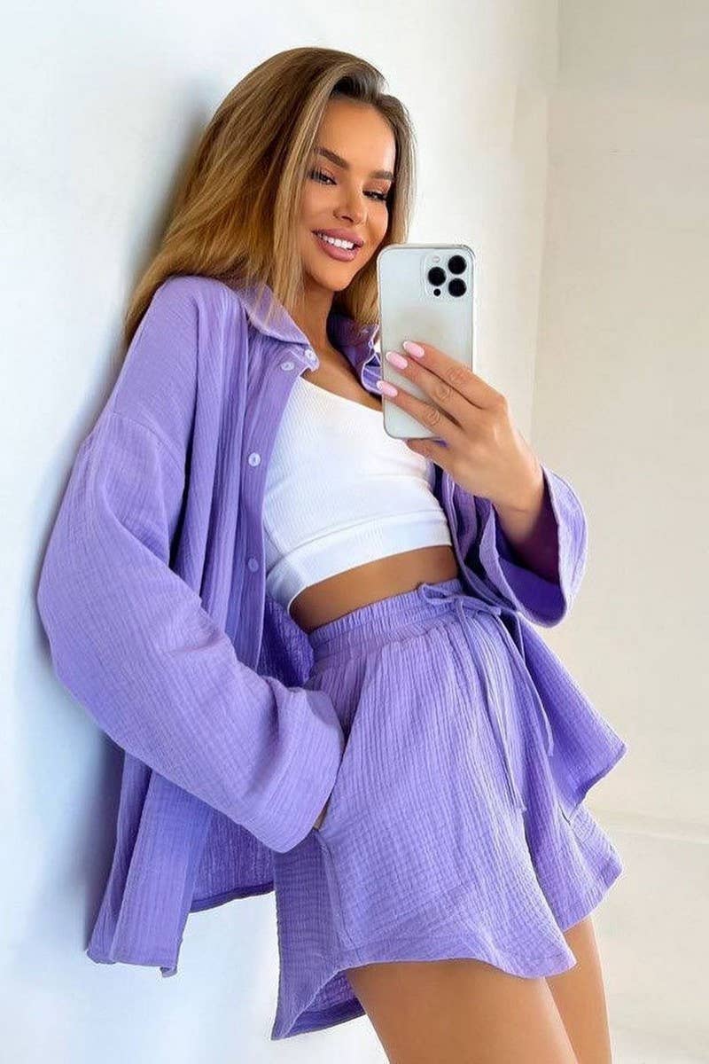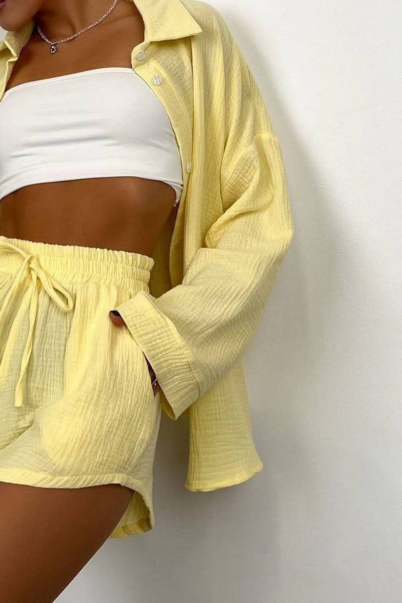 LONG-SLEEVED COMMUTER SHIRT AND SHORTS SET