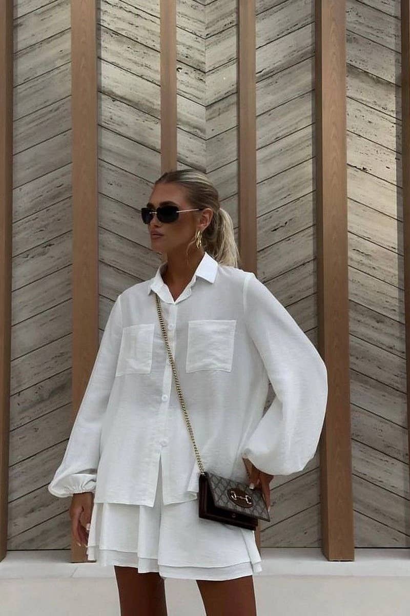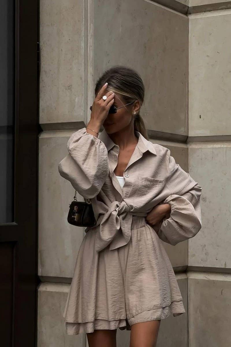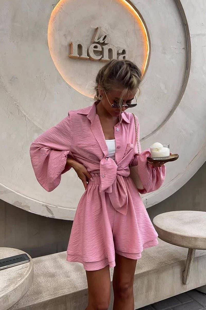 LONG-SLEEVED TOP AND RUFFLED SHORTS SET