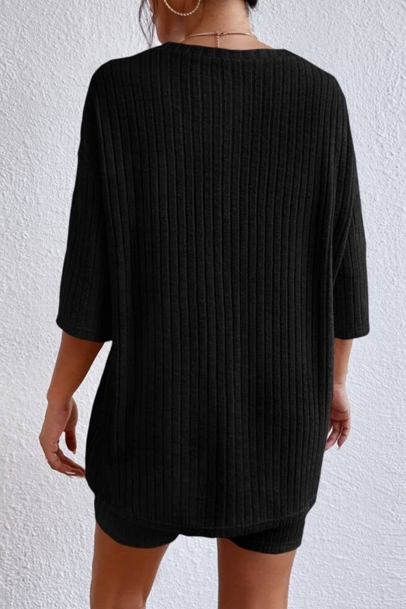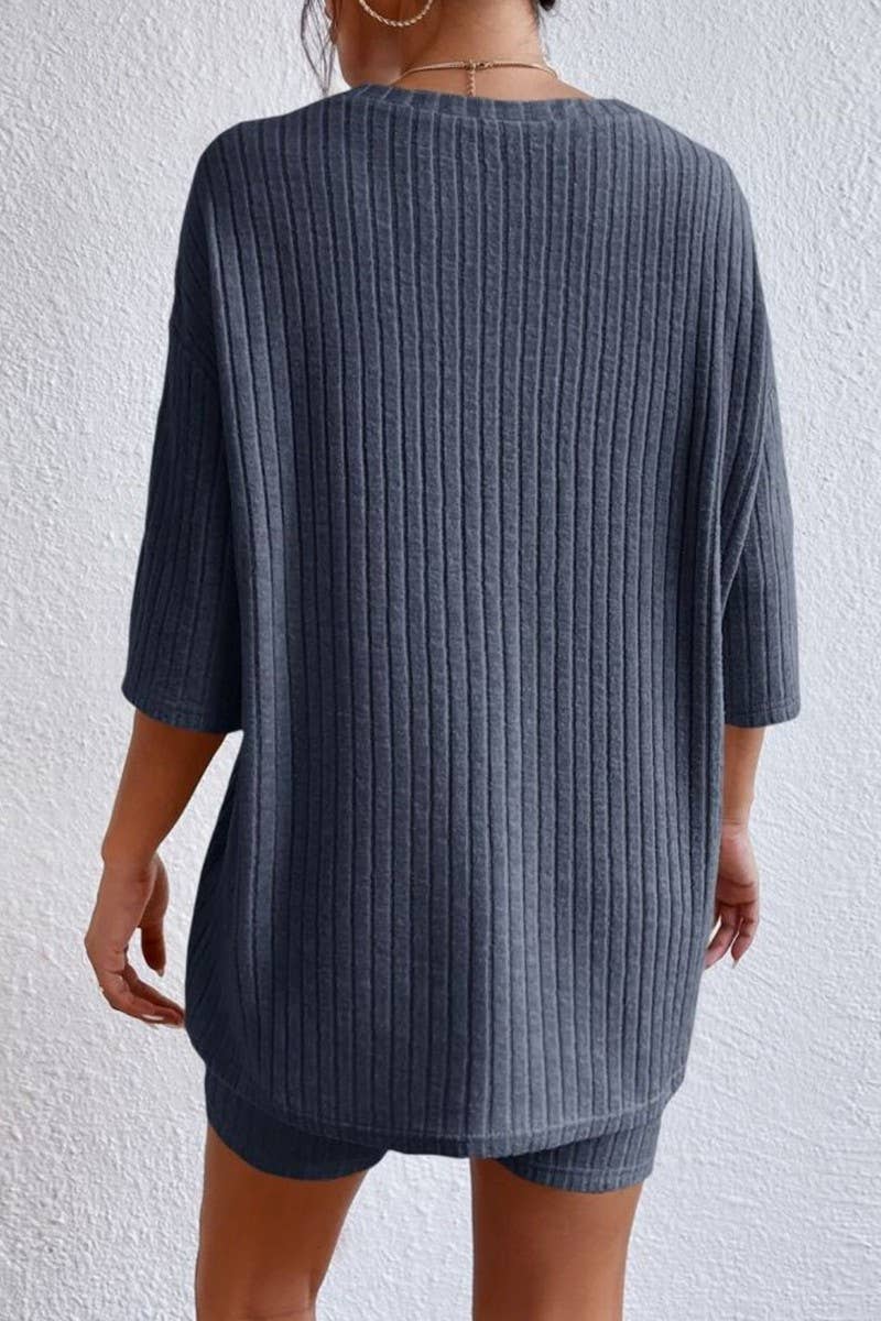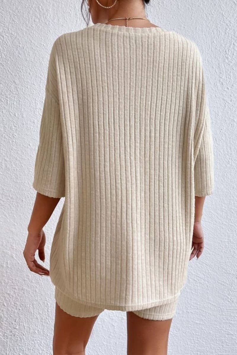 SOLID COLOR ROUND NECK LOOSE TOP AND SHORTS SET