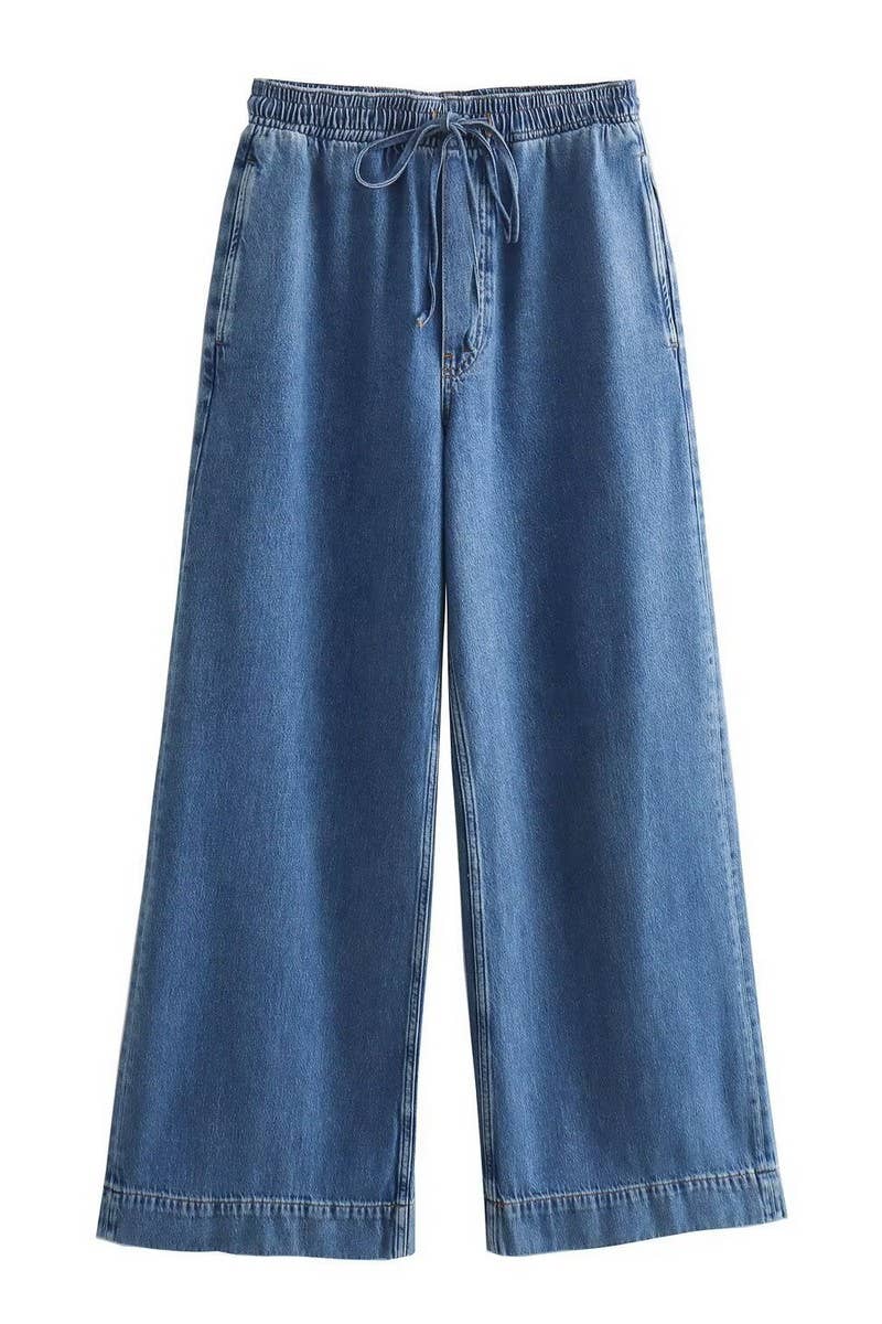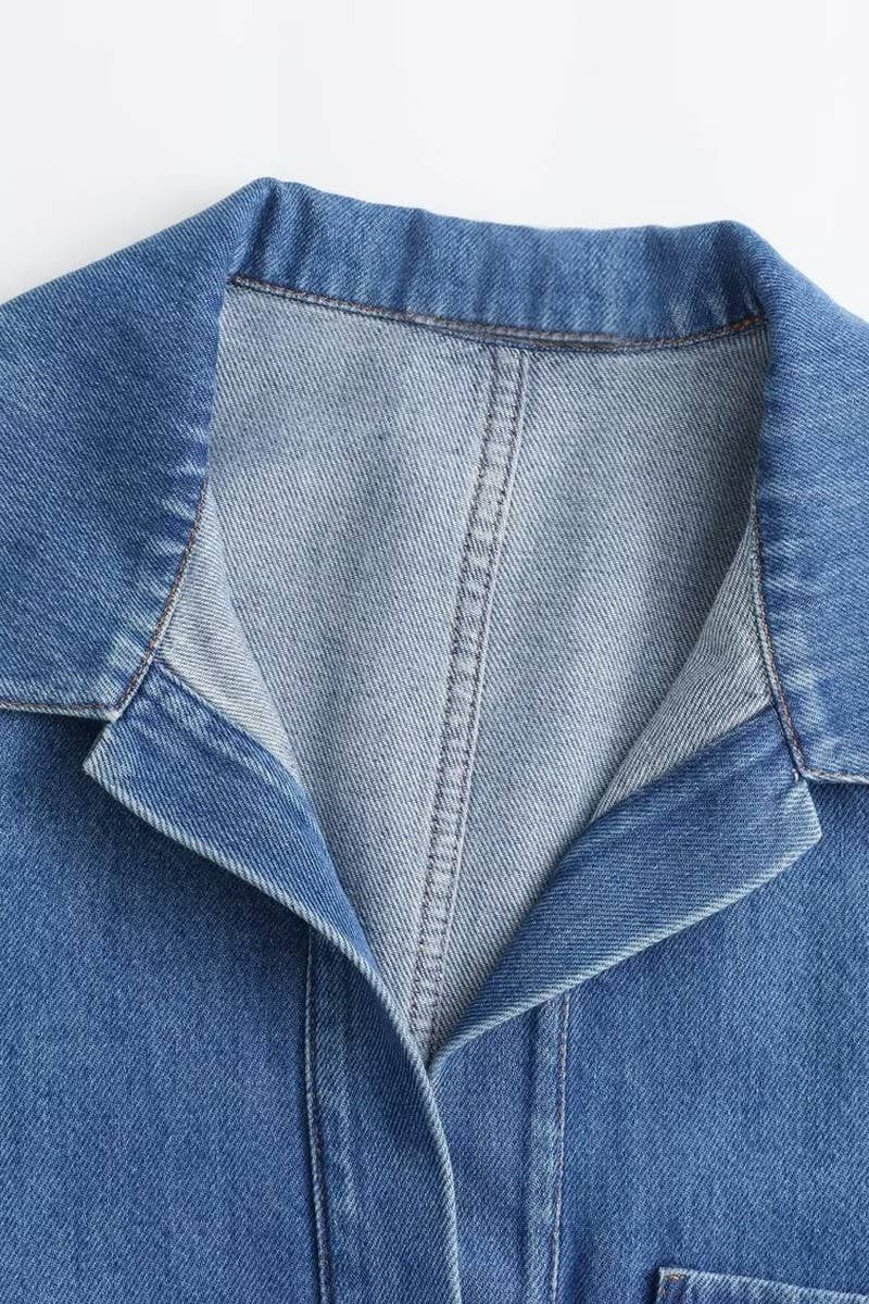 WASHED BLUE DENIM TOP AND STRAIGHT PANTS SET
