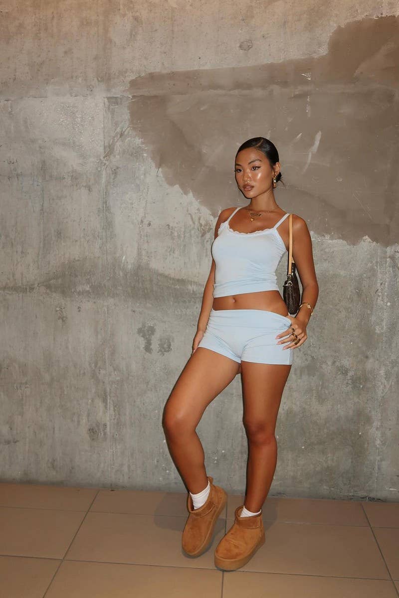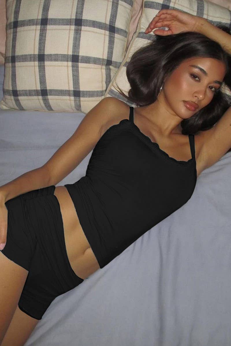 LACE TRIM SUSPENDER TOP SHORTS SET