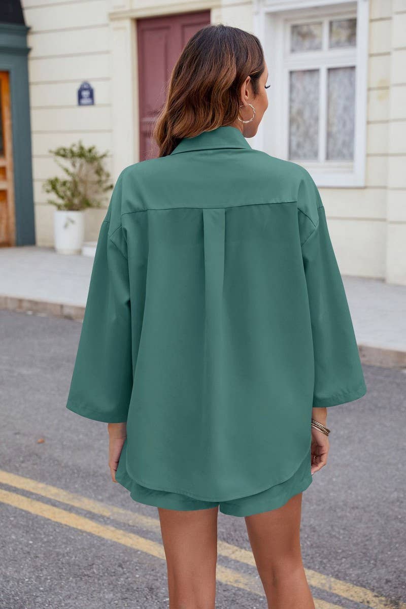 LAPEL THREE-QUARTER SLEEVE SHIRT AND SHORTS SUIT