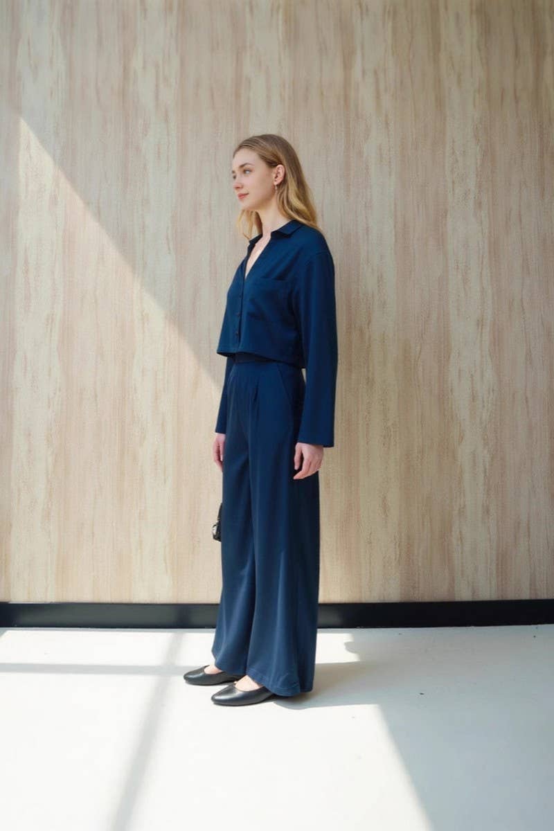 SOLID COLOR LONG SLEEVE PANTS LOUNGE SET