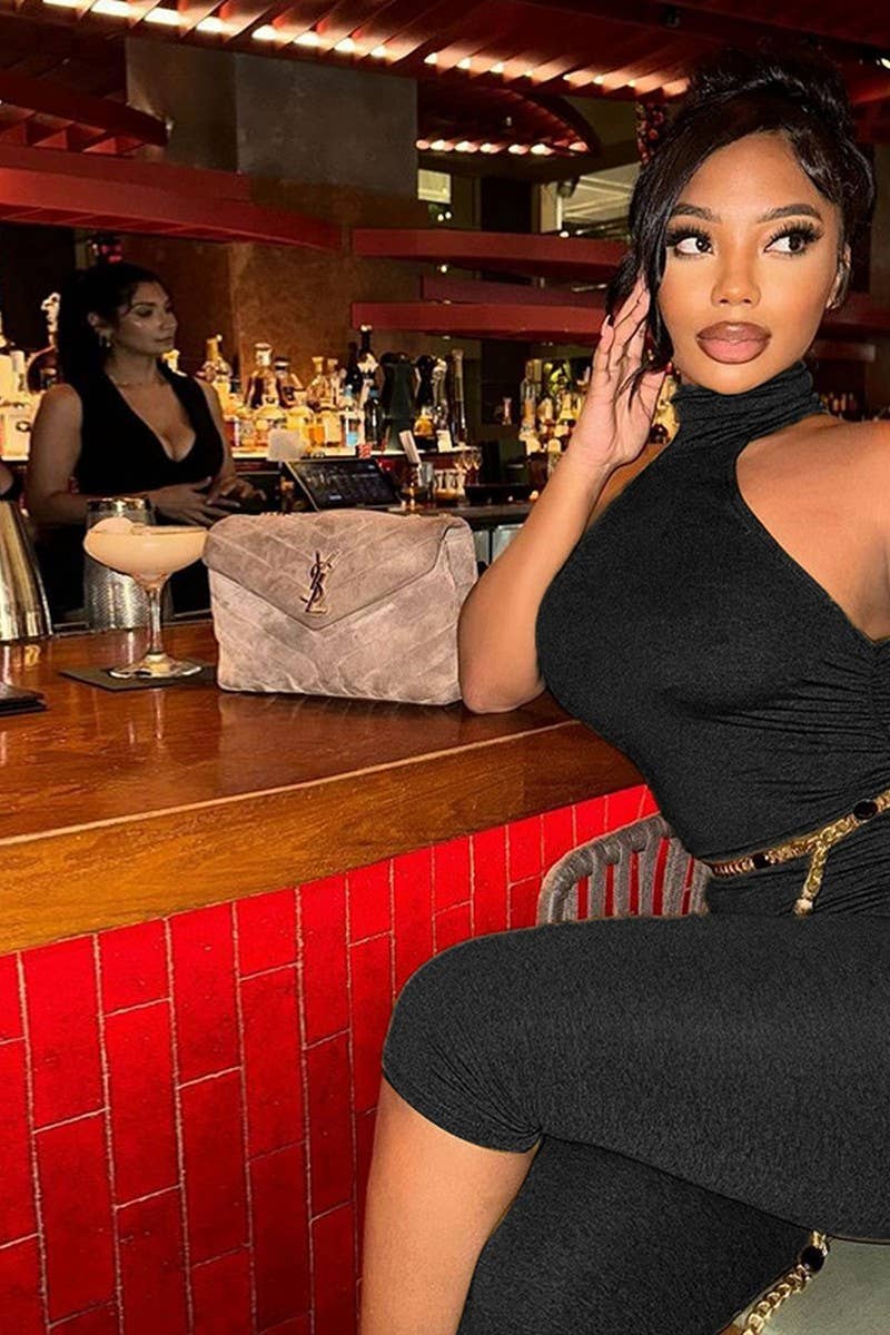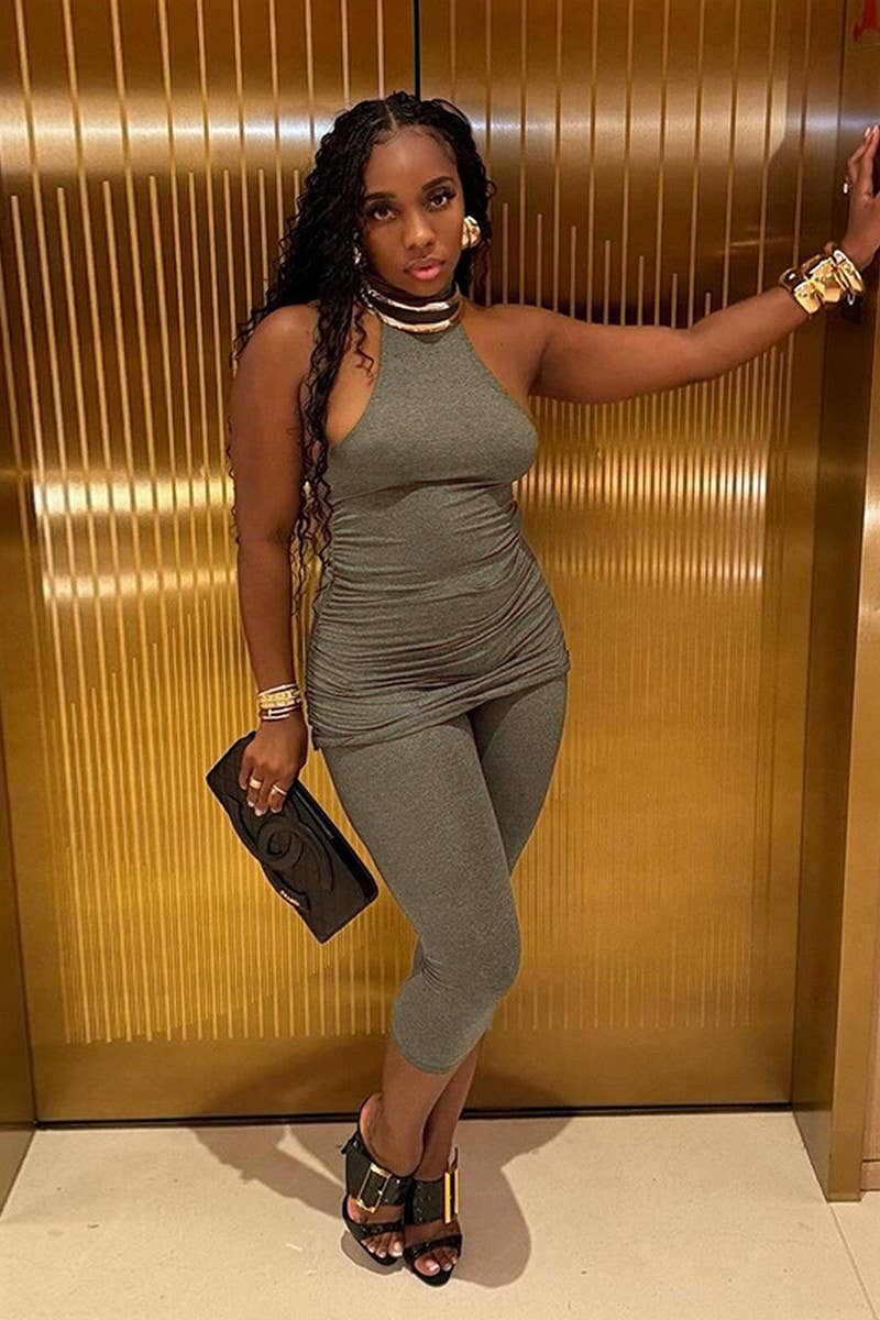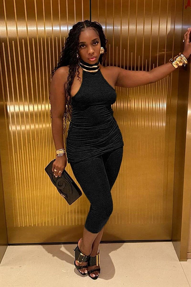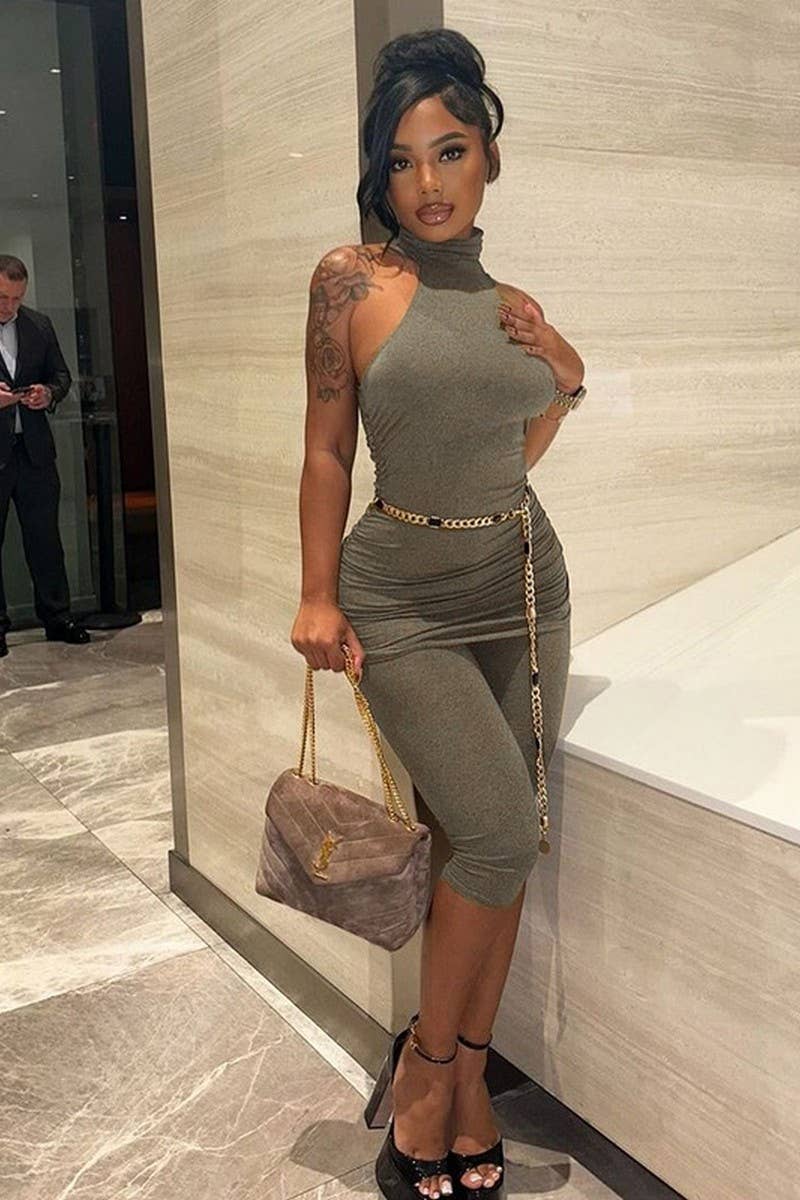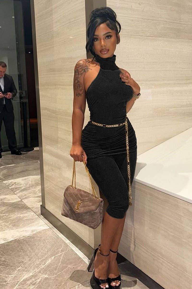 HIGH NECK SLEEVELESS TOP AND BIKER SHORTS SET