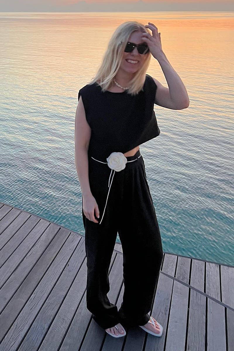 LINEN SLEEVELESS TOP & WIDE LEG PANTS SET