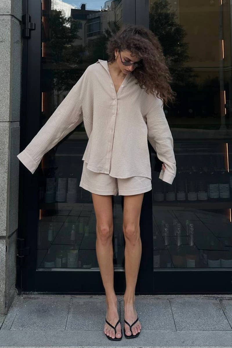 COTTON WHITE SHIRT & SHORTS LOUNGE SET