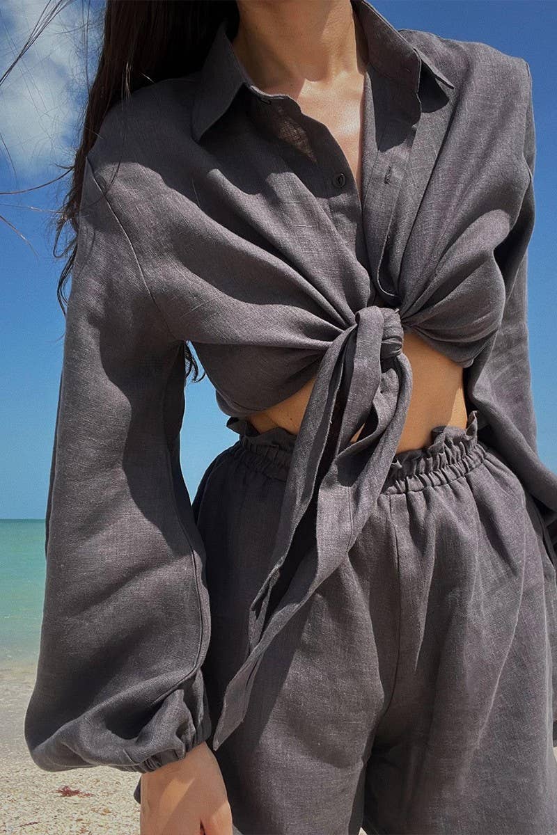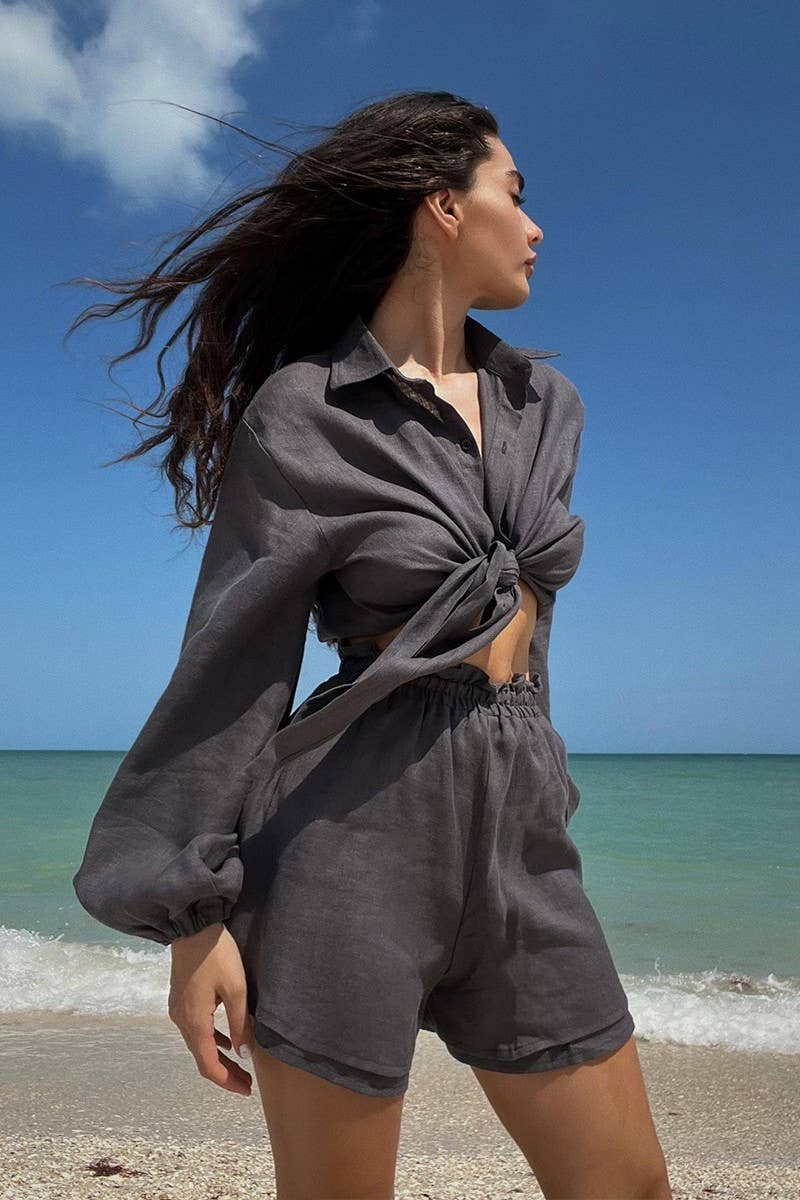 COTTON PUFF SLEEVE TOP & PLEATED SHORTS SET