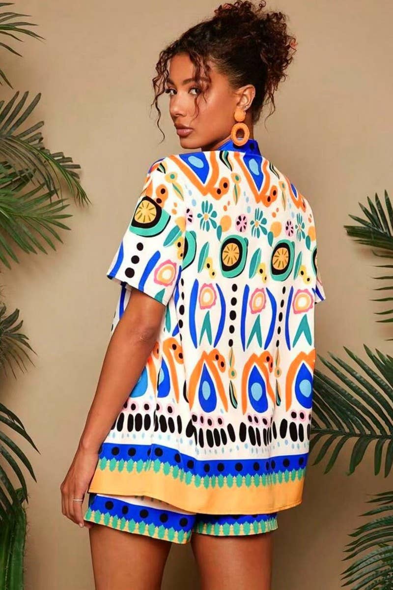 CASUAL FLORAL PRINT SHORT SLEEVE & SHORTS SET