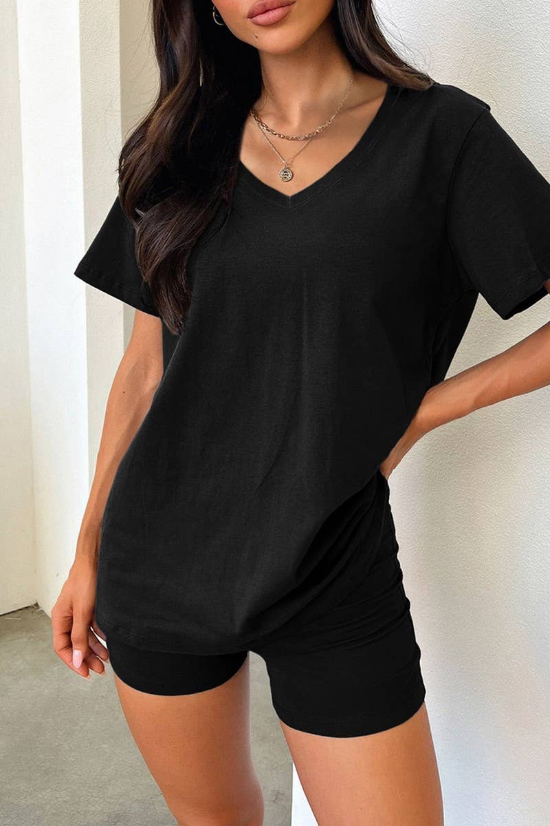 V NECK CASUAL ELEGANT SOLID TWO-PIECE SET