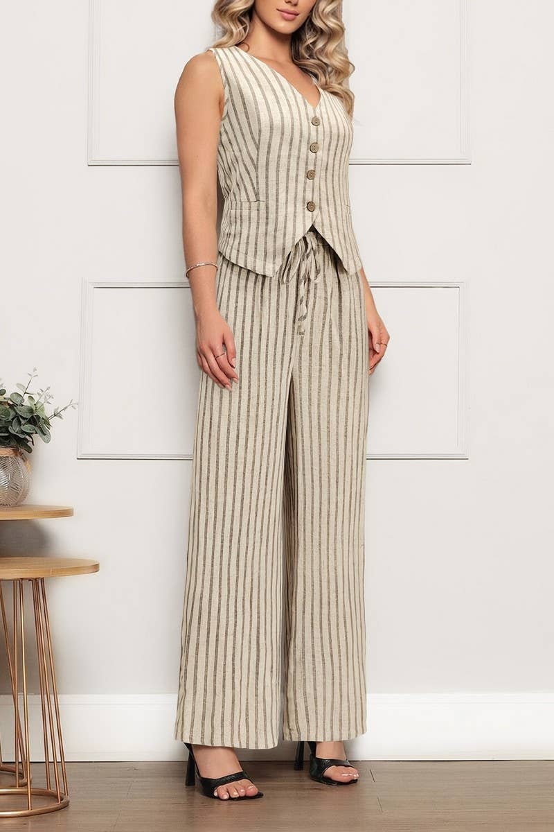 SLEEVELESS VEST & STRIPED ELASTIC WAIST PANTS SET
