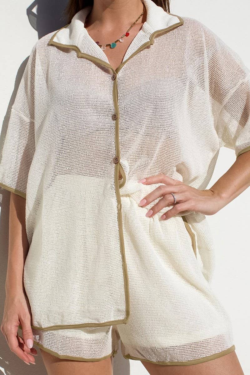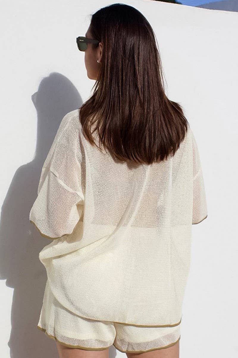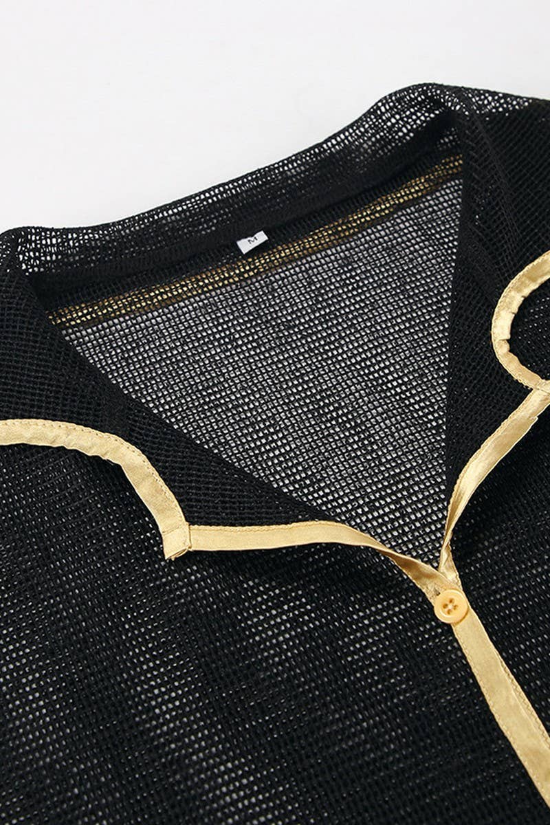 SOLID COLOR SEE-THROUGH LAPEL CASUAL SUIT