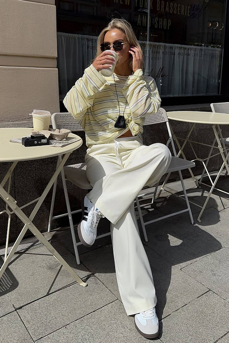 LOOSE CREW NECK STRIPED SEMI-SHEER T-SHIRT