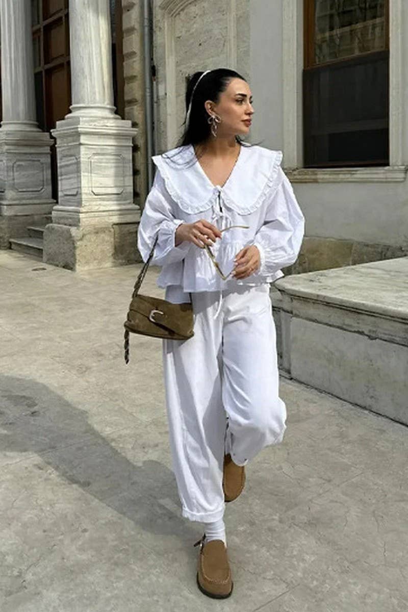 PETER PAN COLLAR LACE LONG SLEEVE SHIRT