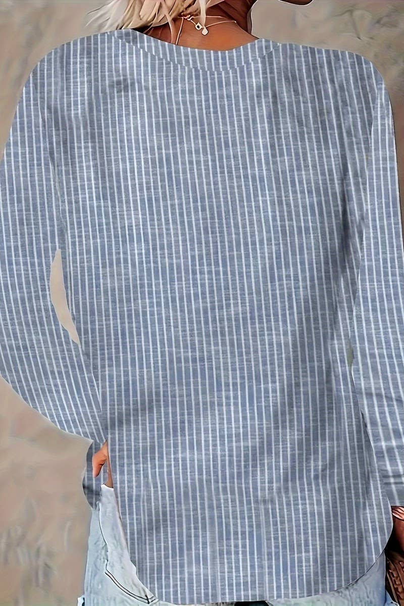 STRIPED PRINT LONG SLEEVE CREWNECK TEE