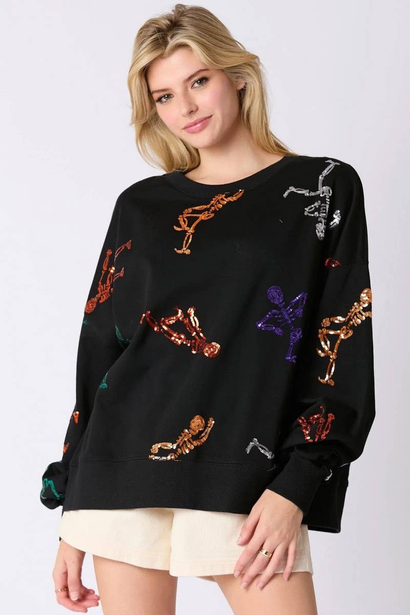 HALLOWEEN SKULL SEQUINED SWEATSHIRT