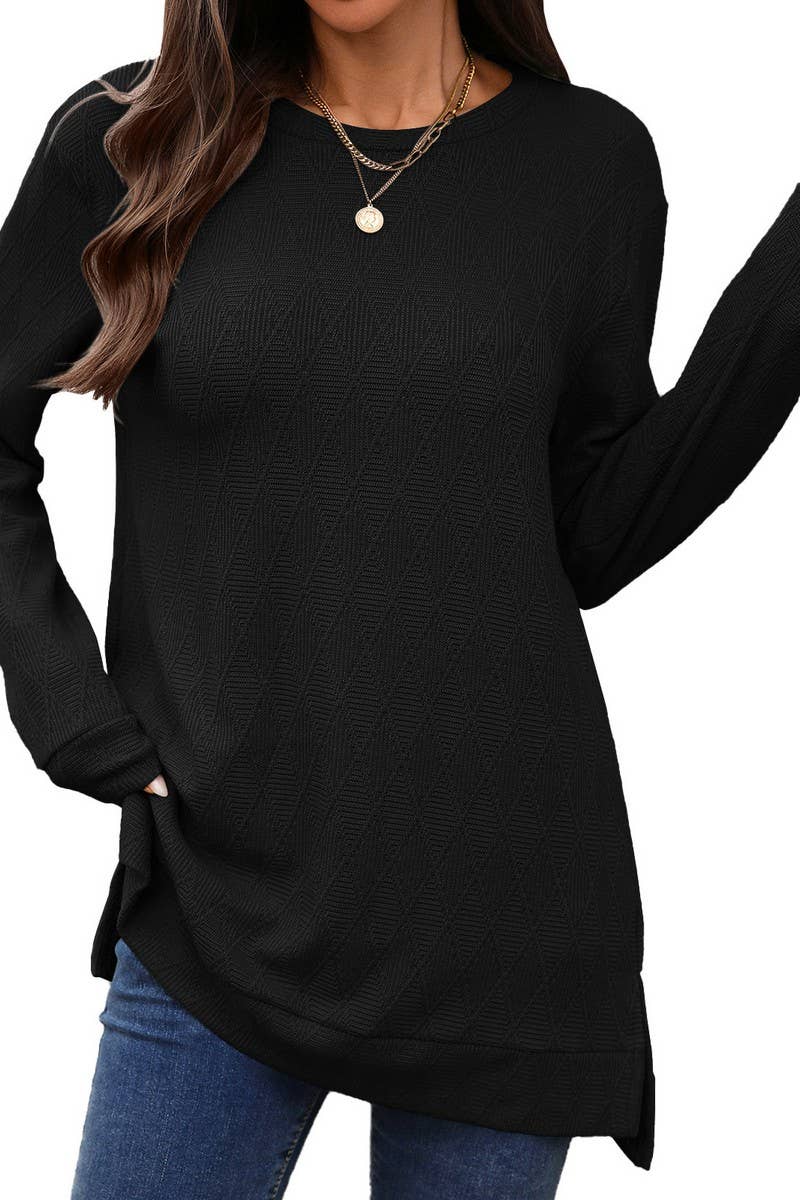 CREW NECK SOLID KNIT LONG SLEEVE LOOSE TOP