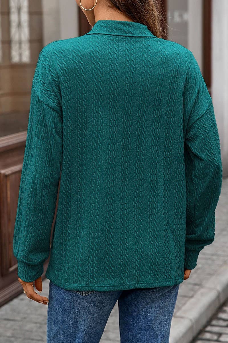 V NECK CABLE KNIT SOLID LONG SLEEVE TEE