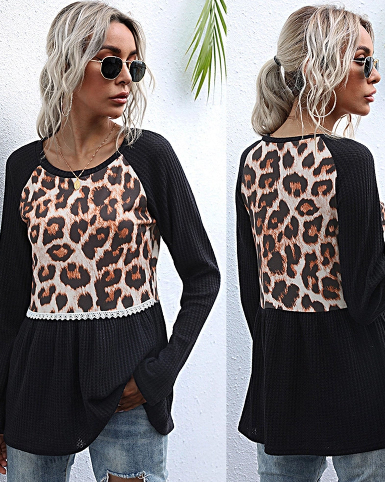 Casual leopard print patchwork T-shirt