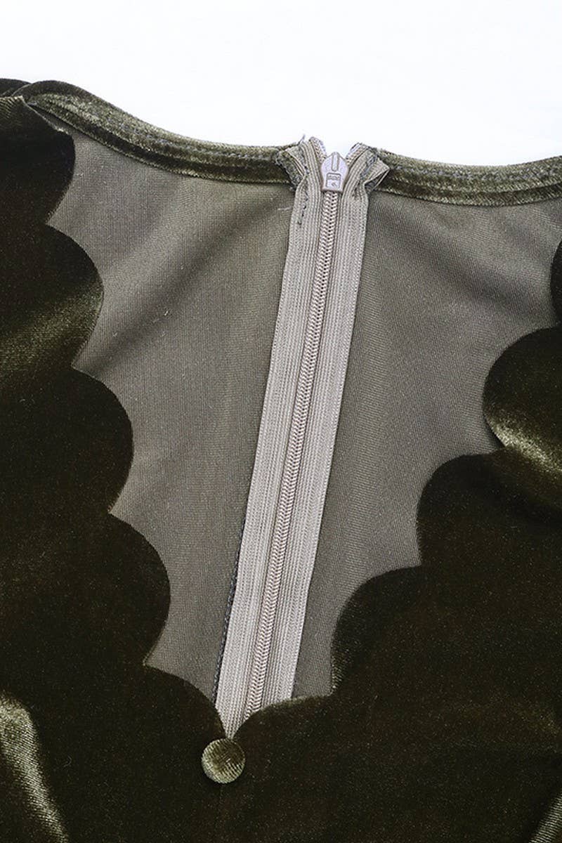 VELVET V NECK LACE NECK PARTY DRESS