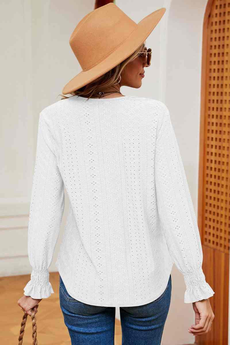 V-NECK LACE PATCHWORK LONG-SLEEVED TOP