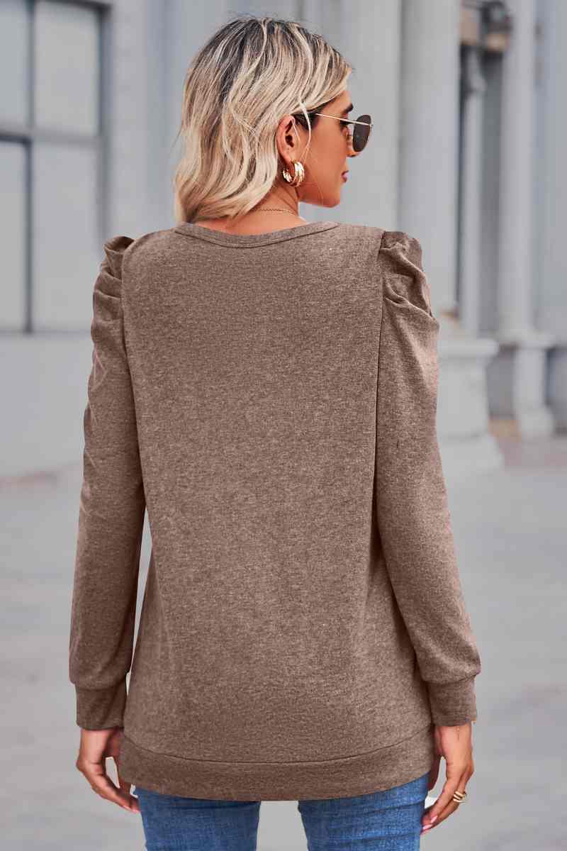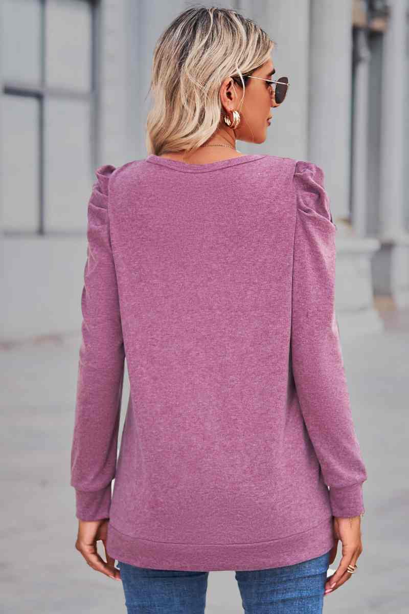 LOOSE CREW-NECK PLEATED LONG-SLEEVED TOP