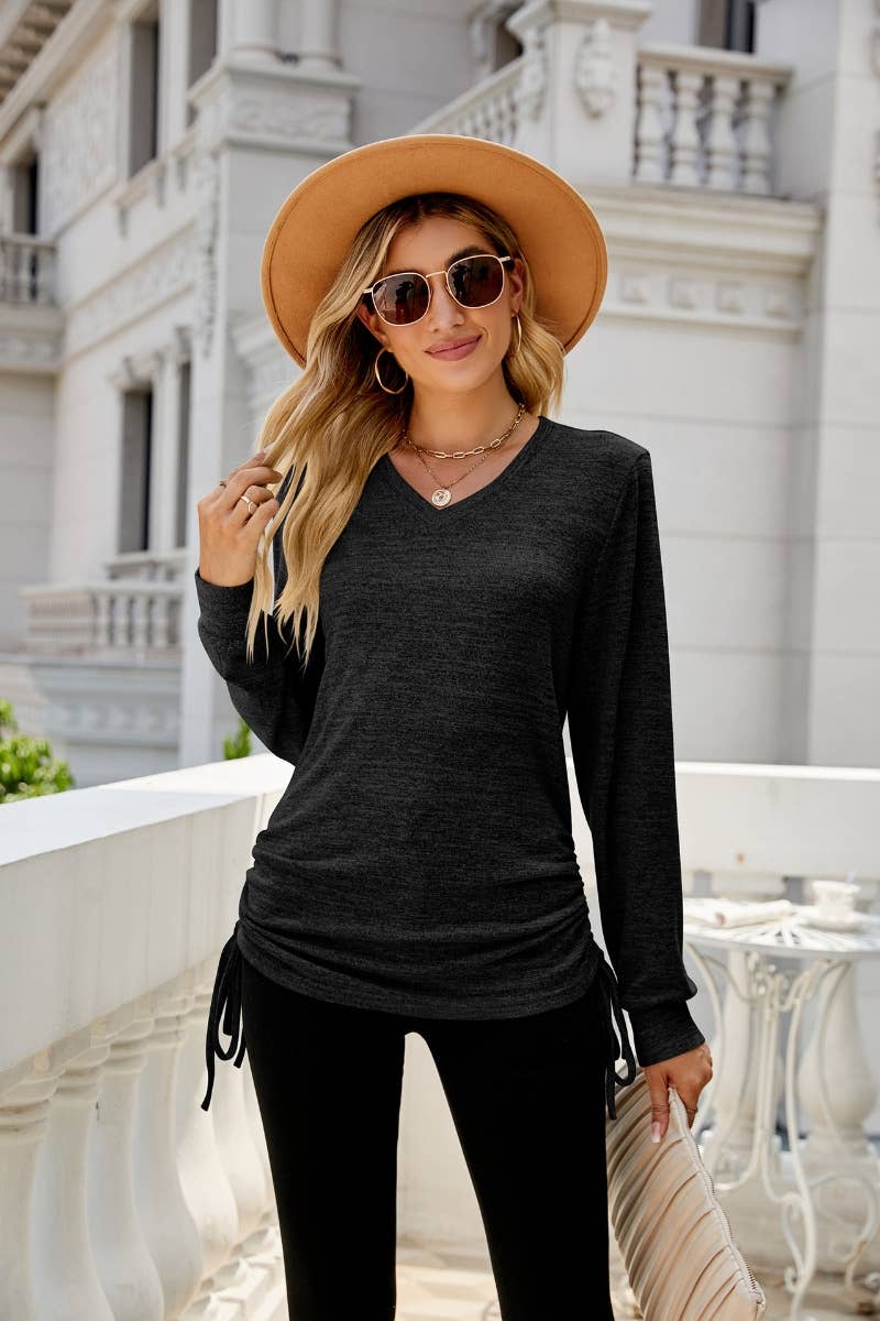 FALL V-NECK DRAWSTRING LONG-SLEEVED TOP