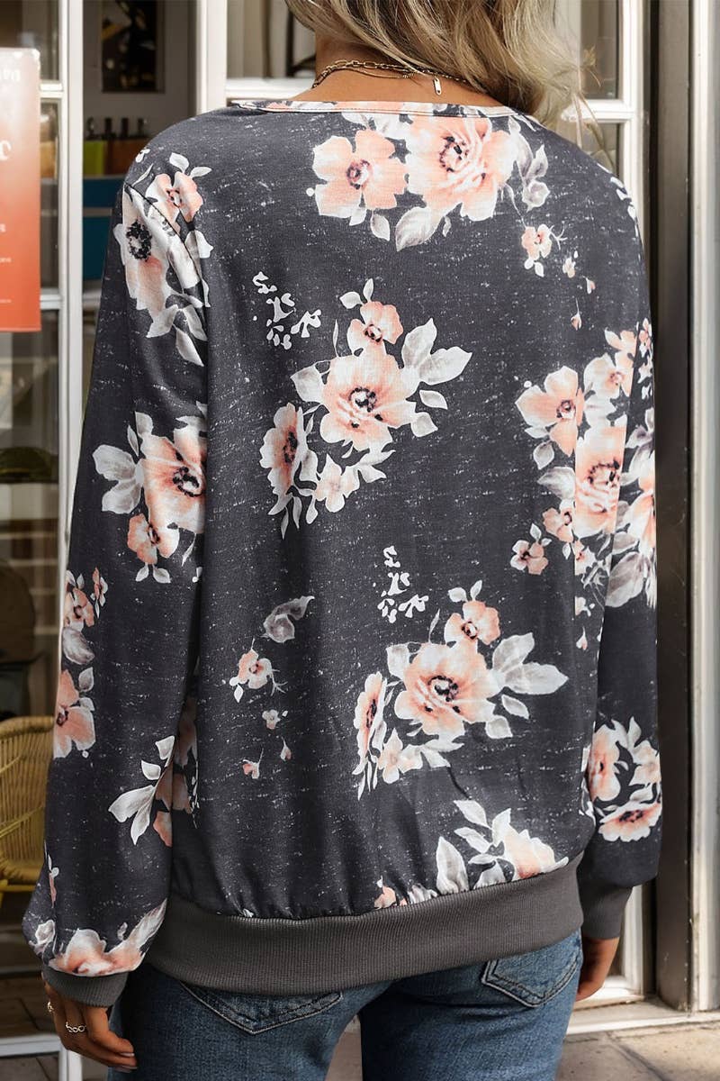 V-NECK FLORAL PRINT LONG SLEEVE BASE TOP