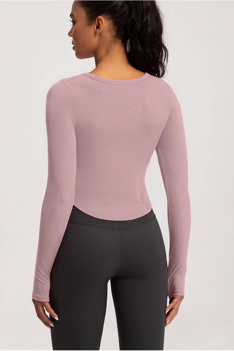 SQUARE NECK TIGHT LONG SLEEVE PADDED FITNESS TOP