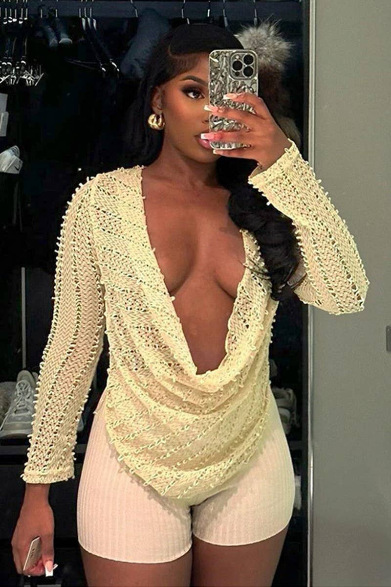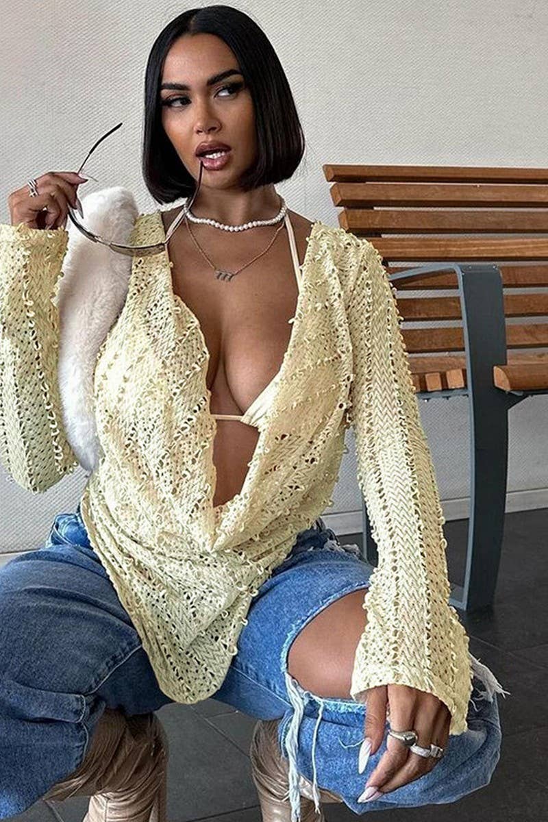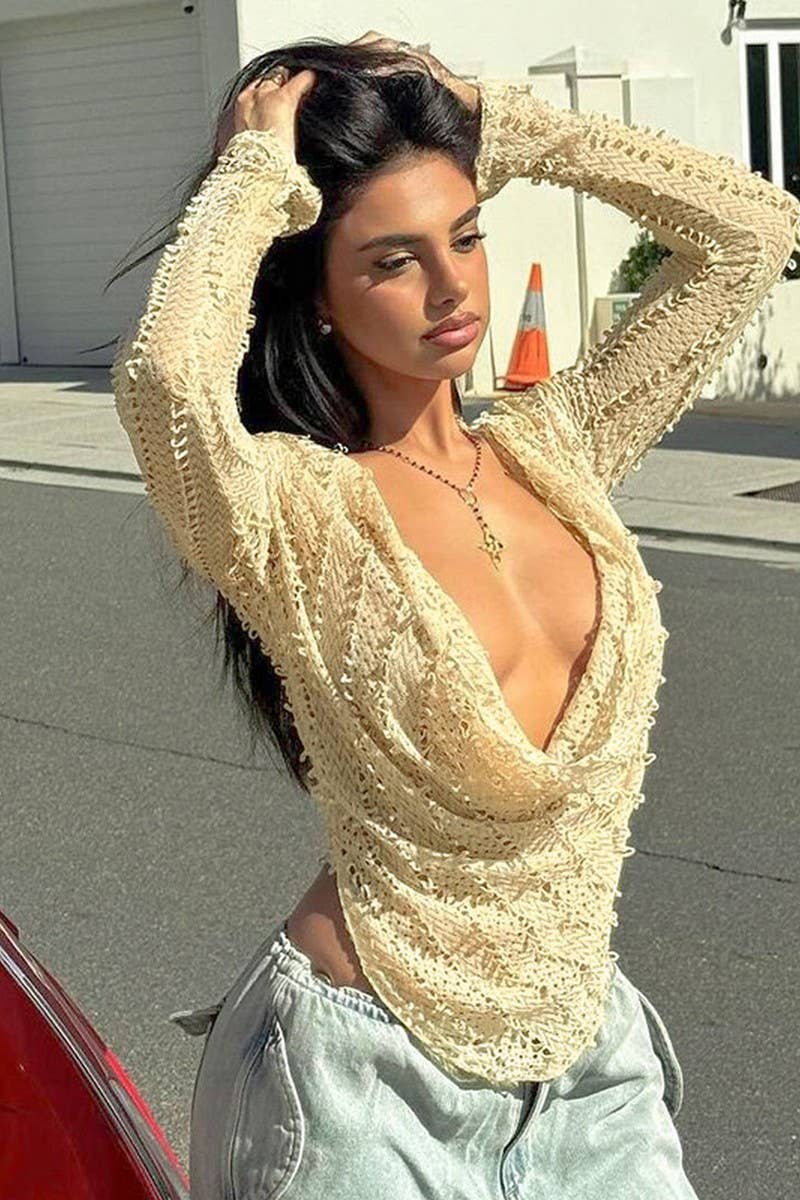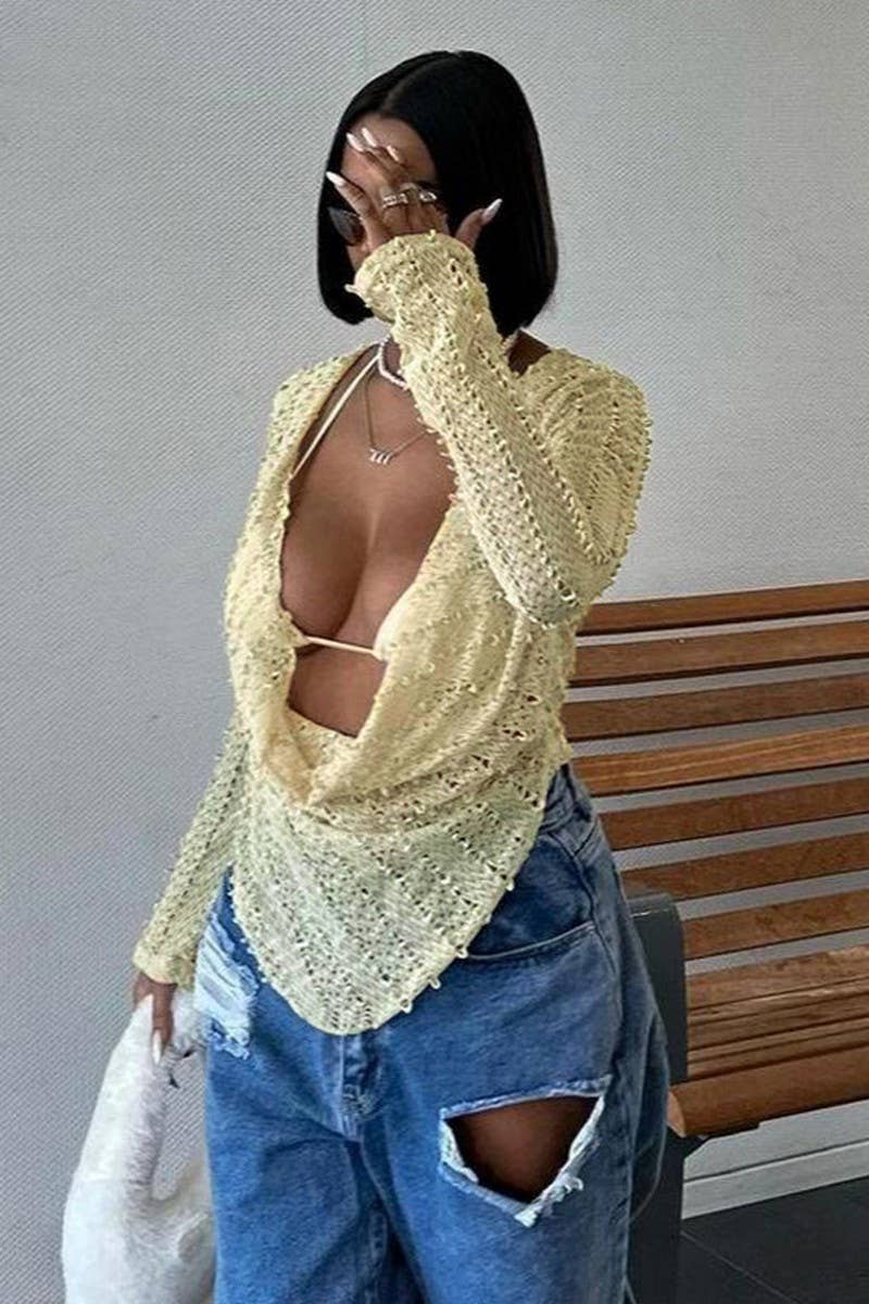 SOLID COLOR LONG SLEEVE TOP WITH PUFF COLLAR