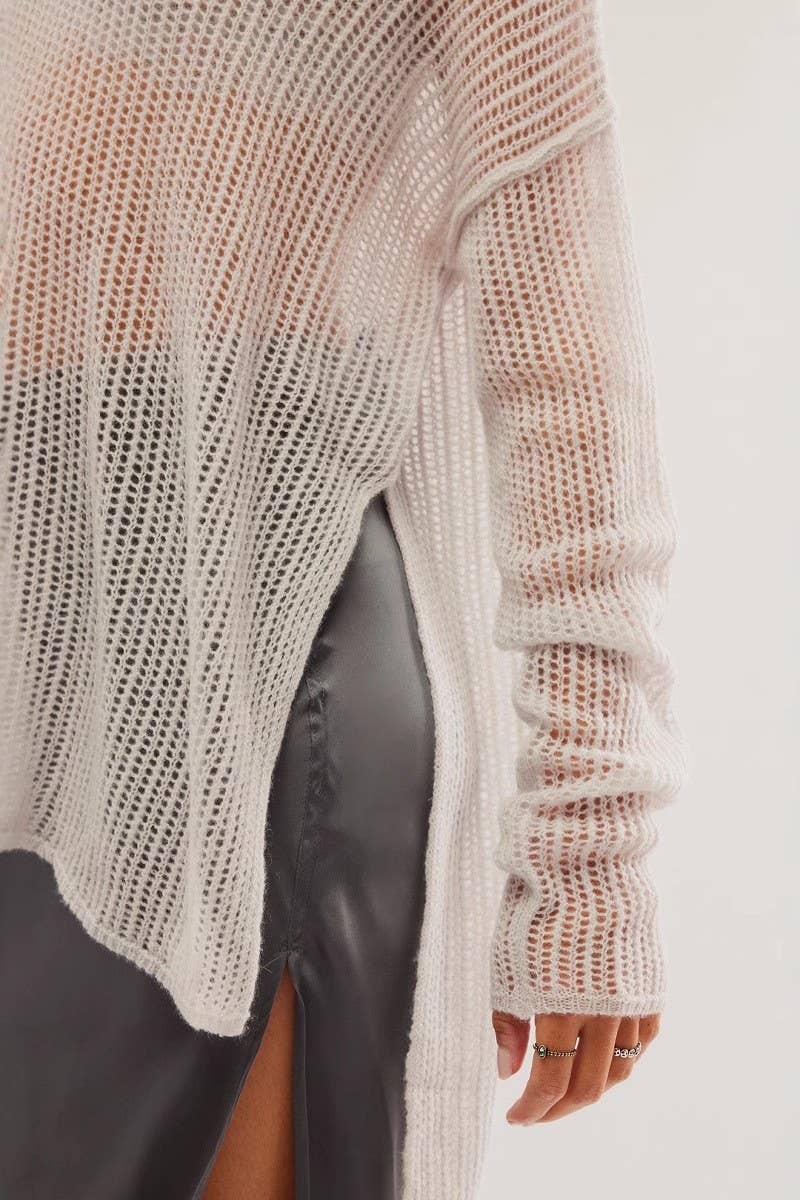 SOLID LONG SLEEVE KNIT BIKINI BEACH COVER UP