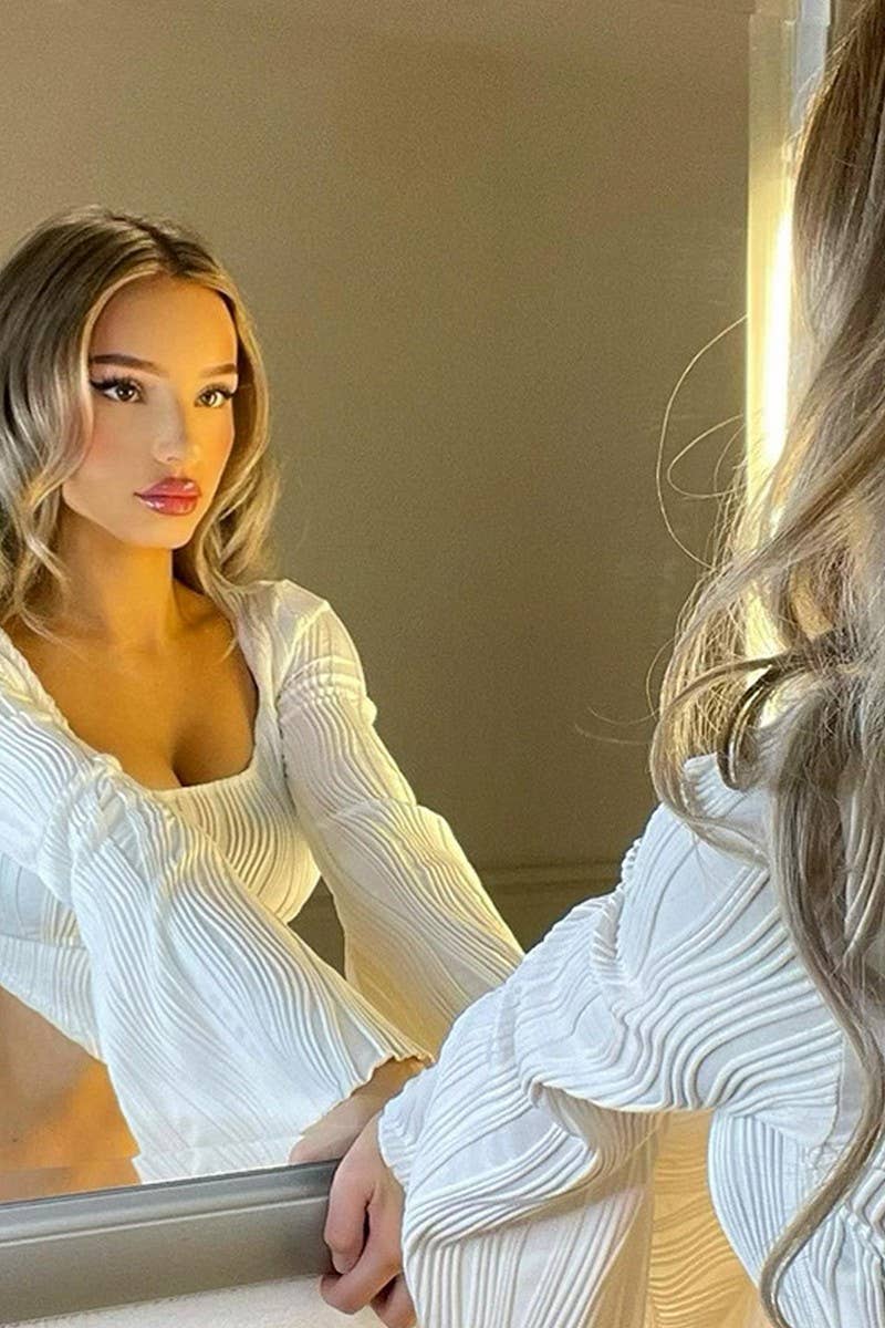 U-NECK STRIPED FLARED LONG-SLEEVED CROPPED TOP