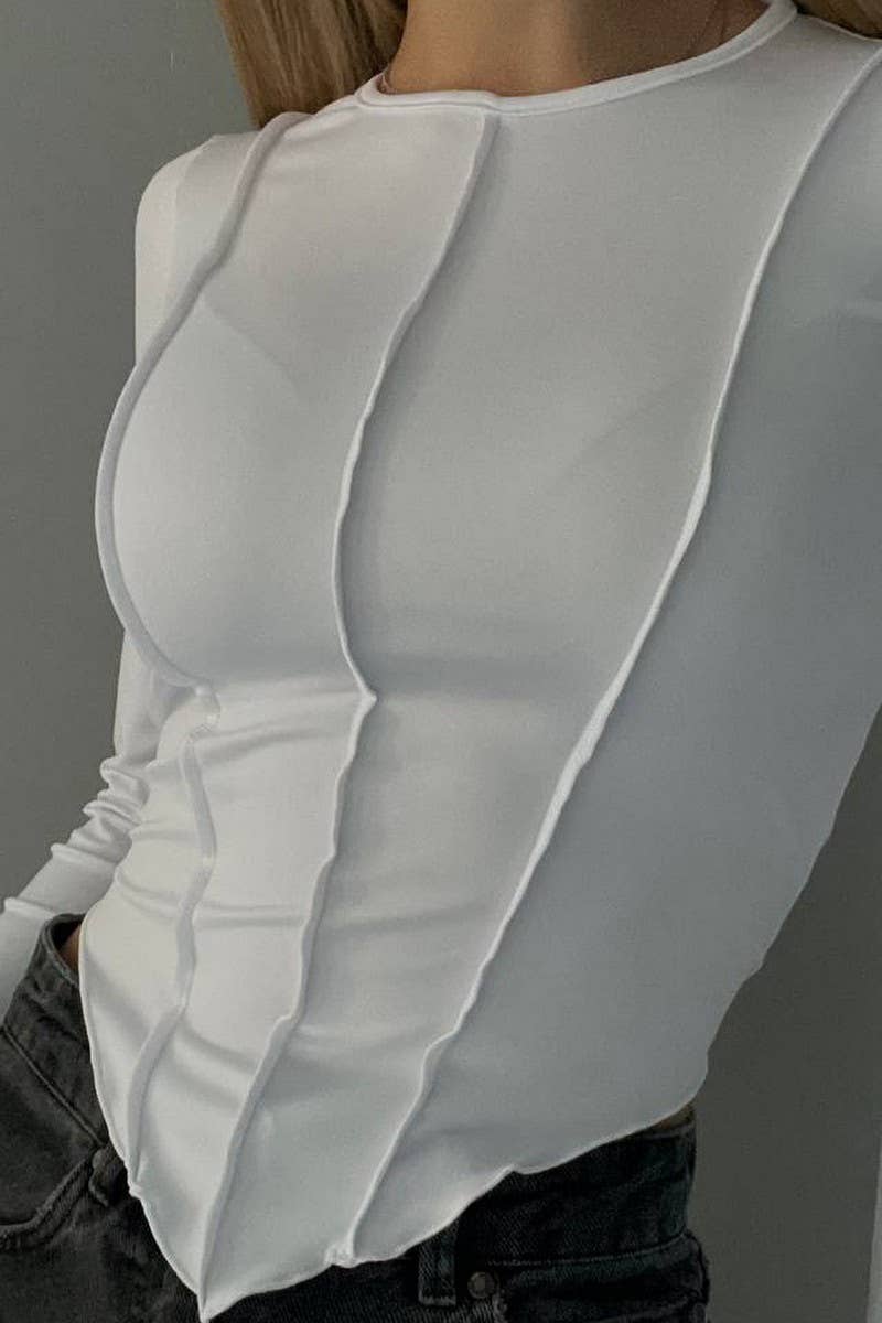 SOLID COLOR LONG SLEEVE ROUND NECK T-SHIRT TOP