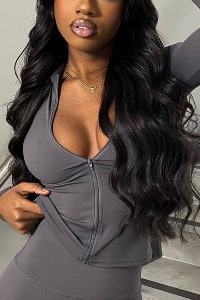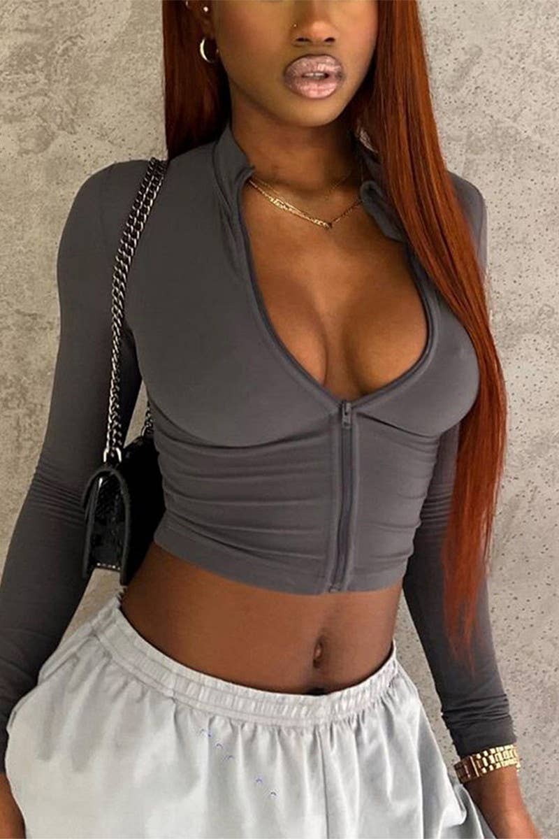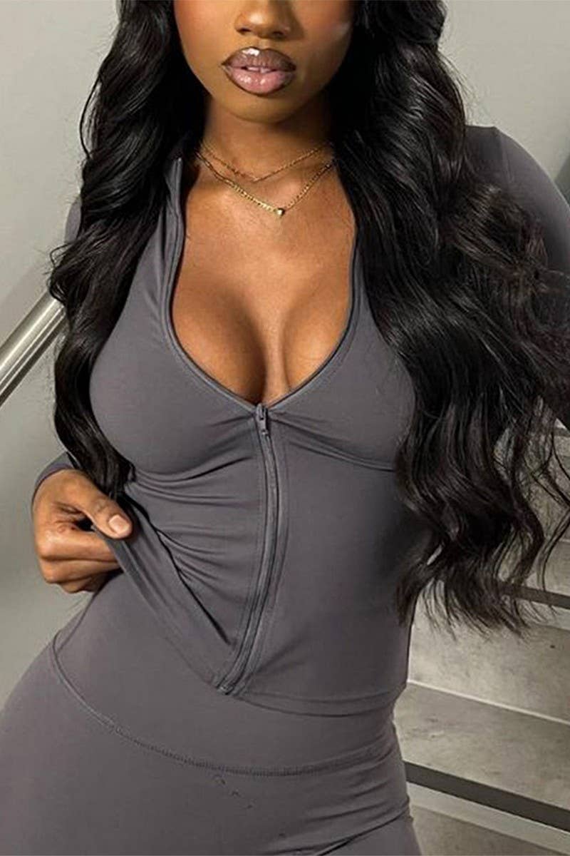 SOLID COLOR ZIPPER LONG SLEEVE SPORTS COAT