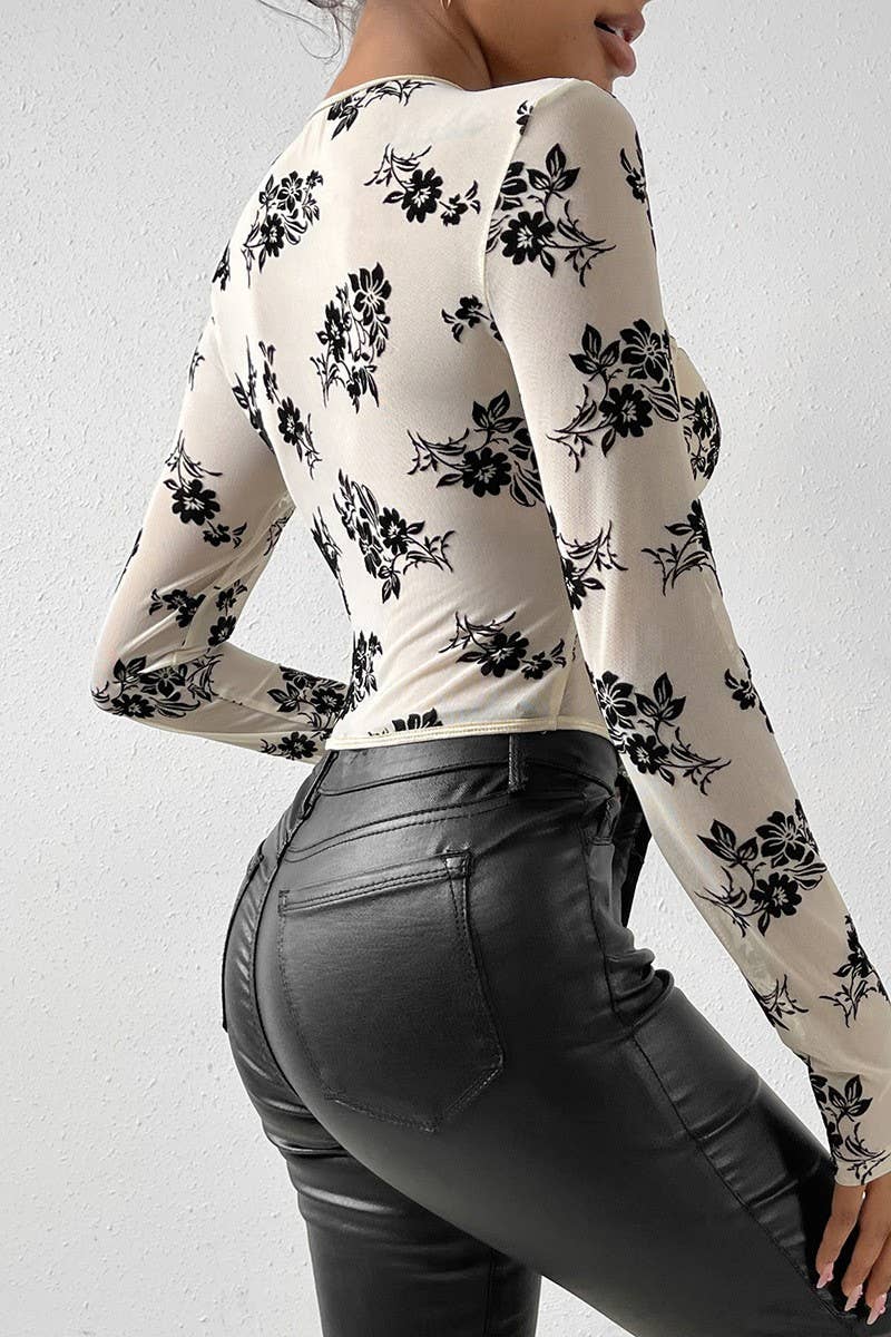 HOLLOW LONG-SLEEVED UNDERWIRE FISHBONE TOP